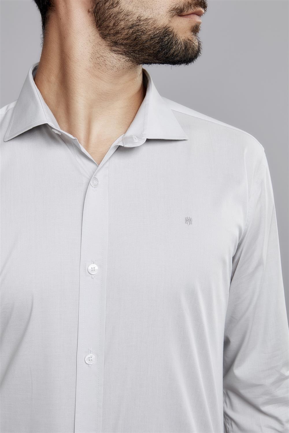 A Camisa Comfort é confeccionado em 97% Algodão e 3% Elastano. O produto é confeccionado com modelagem Comfort, possui corte reto e modelagem mais solta ao corpo, é uma ótima opção para quem busca por leveza e conforto. Possui o colarinho Paris, com 3,5 cm de pé de gola, 7,5 cm de ponta, 14,5 cm abertura e pesponto de 0,3 cm, apropriado para uso de gravatas de nó duplo por possuir abertura maior.