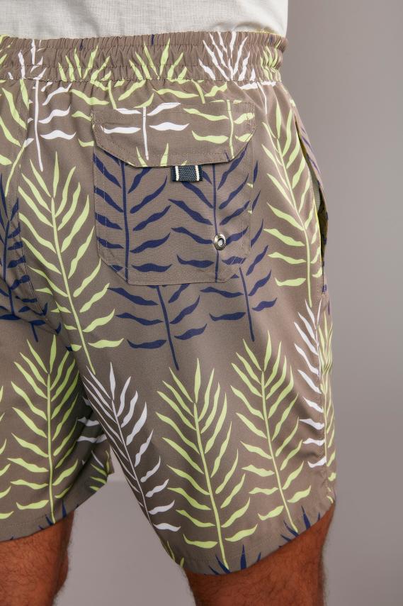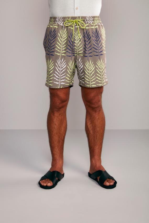 Shorts masculino confeccionado em 93% poliéster e 7% elastano com estampa digital. Apresenta uma composição leve, fresca e moderna.