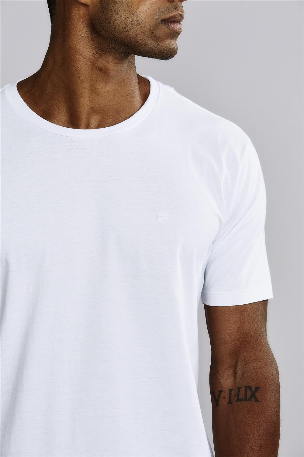Camiseta Manga Curta Malha Básica Slim Fit - Branco