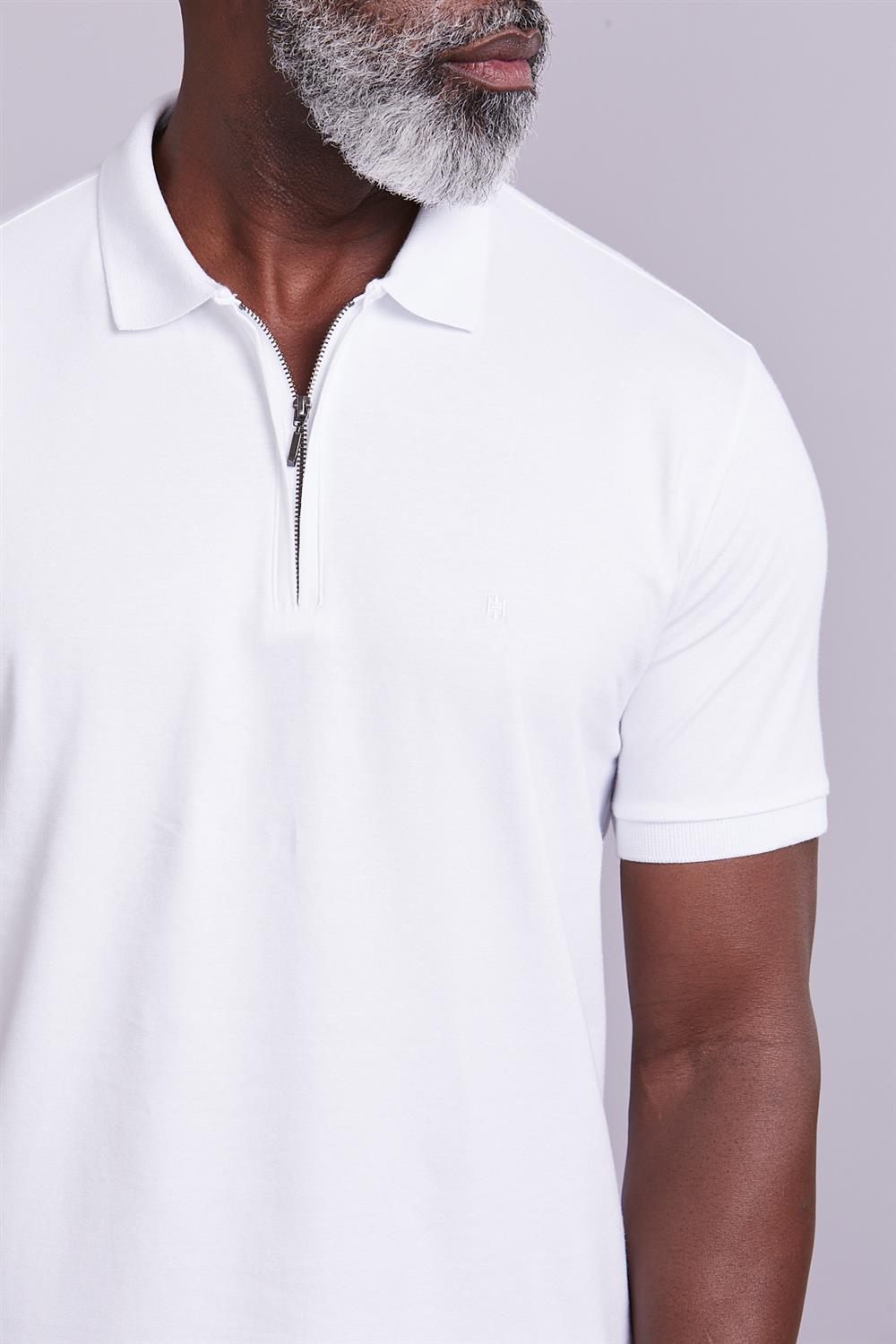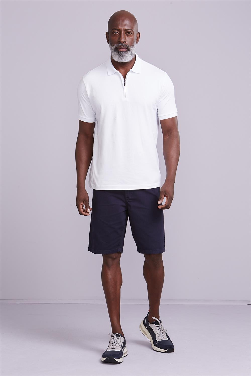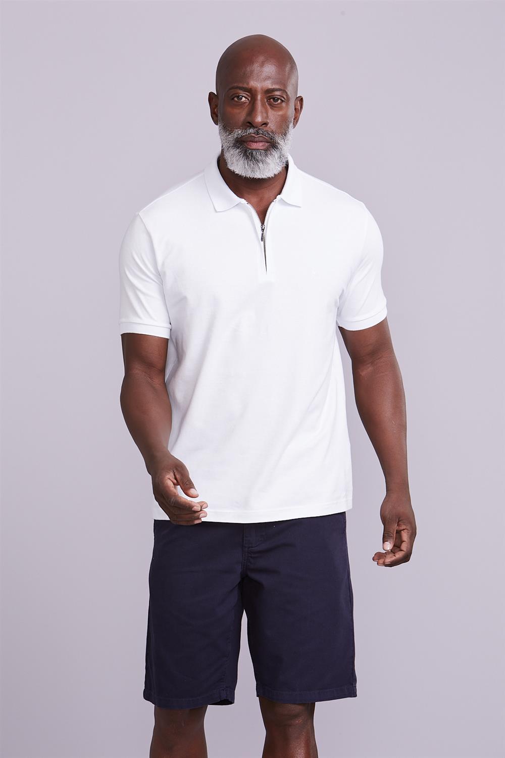 Polo Manga Curta com Zíper Comfort Básica - Branco
