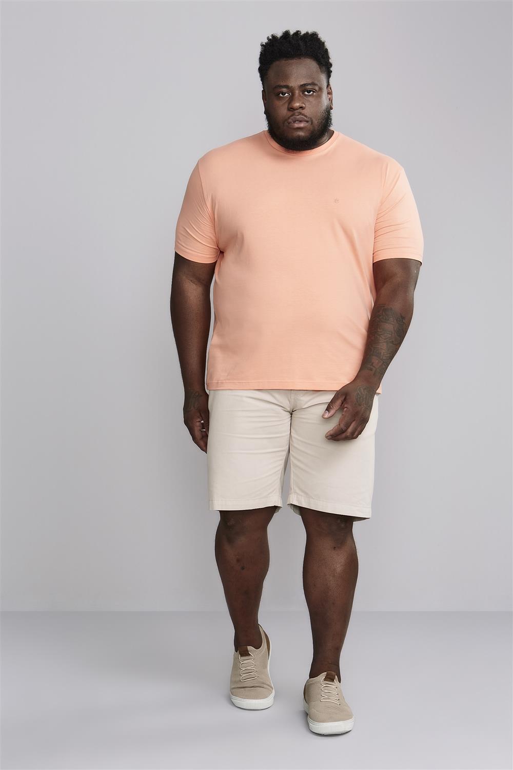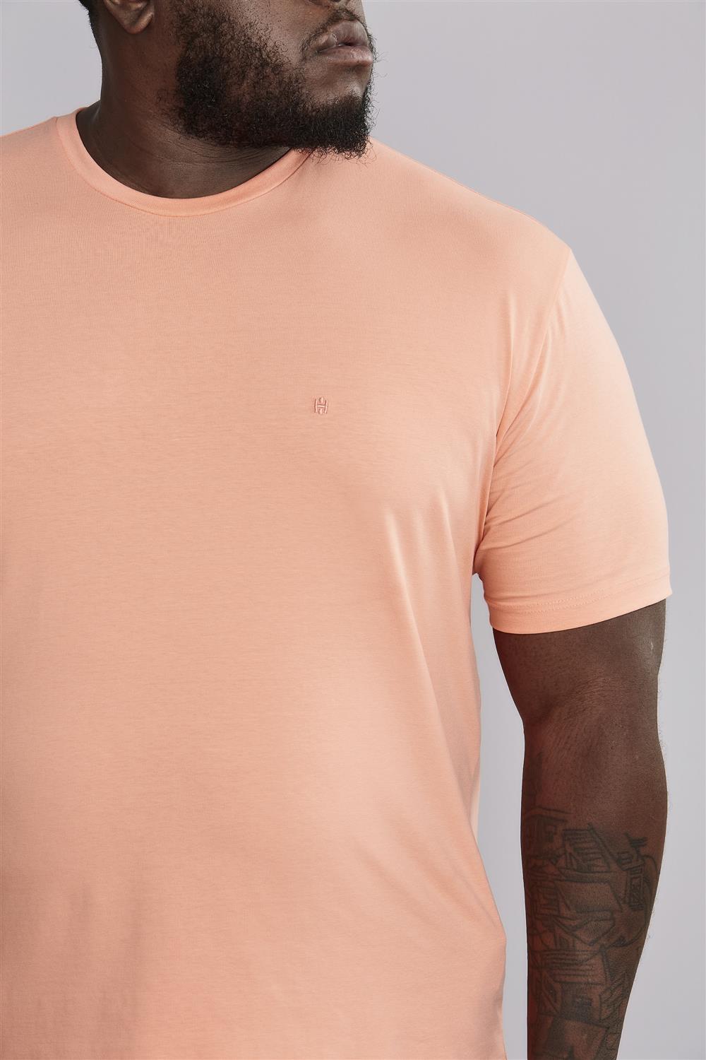 Camiseta Manga Curta Comfort Malha Básica - Rosa Salmão