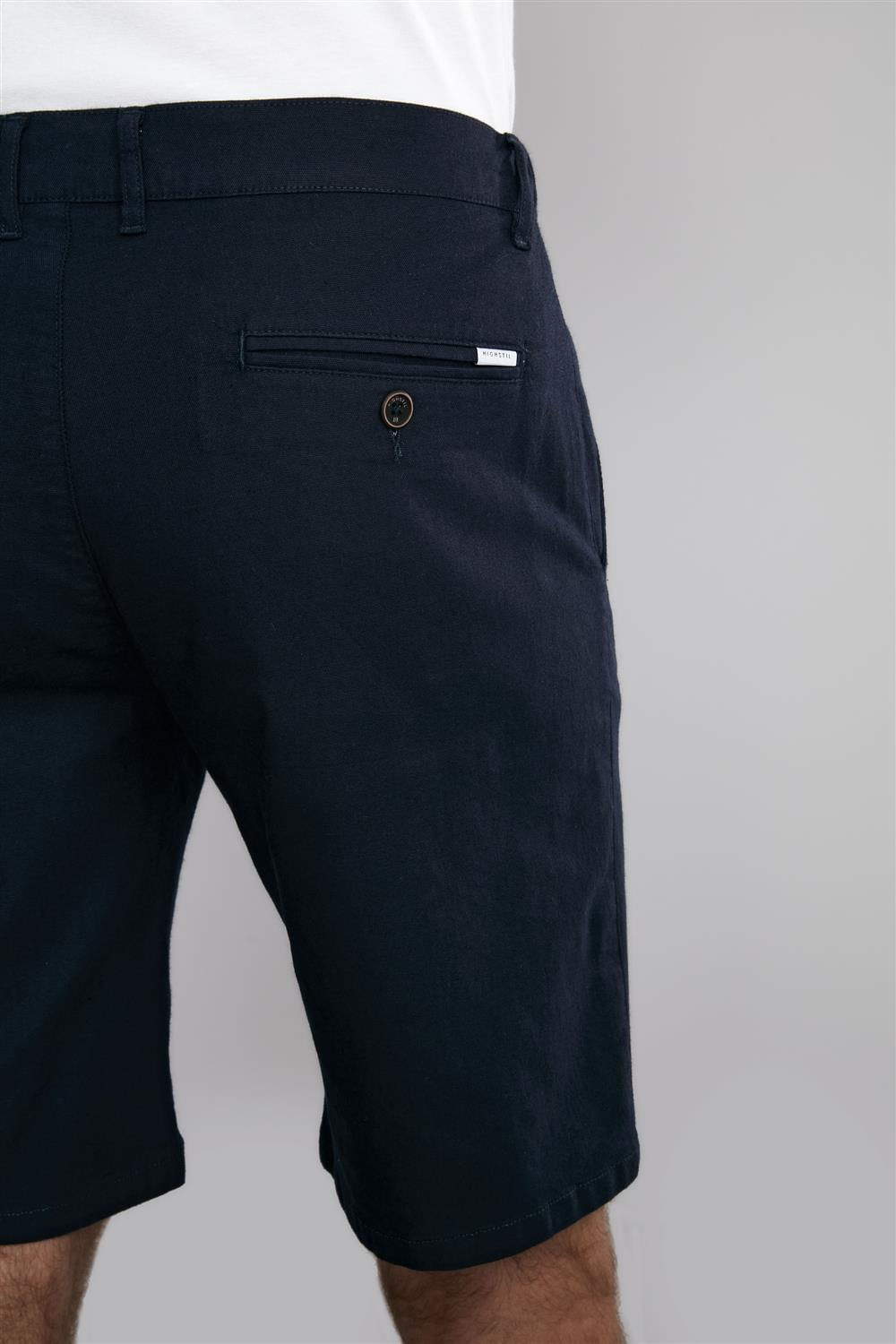 A Bermuda Viscolinho Comfort tem a composição de 70% Algodão, 15% Linho, 12% Viscose e 3% Elastano e é confeccionada em Linho, um tecido orgânico confeccionado em fibras naturais, por isso, ele possui tramas mais abertas fazendo com que as peças sejam mais frescas.