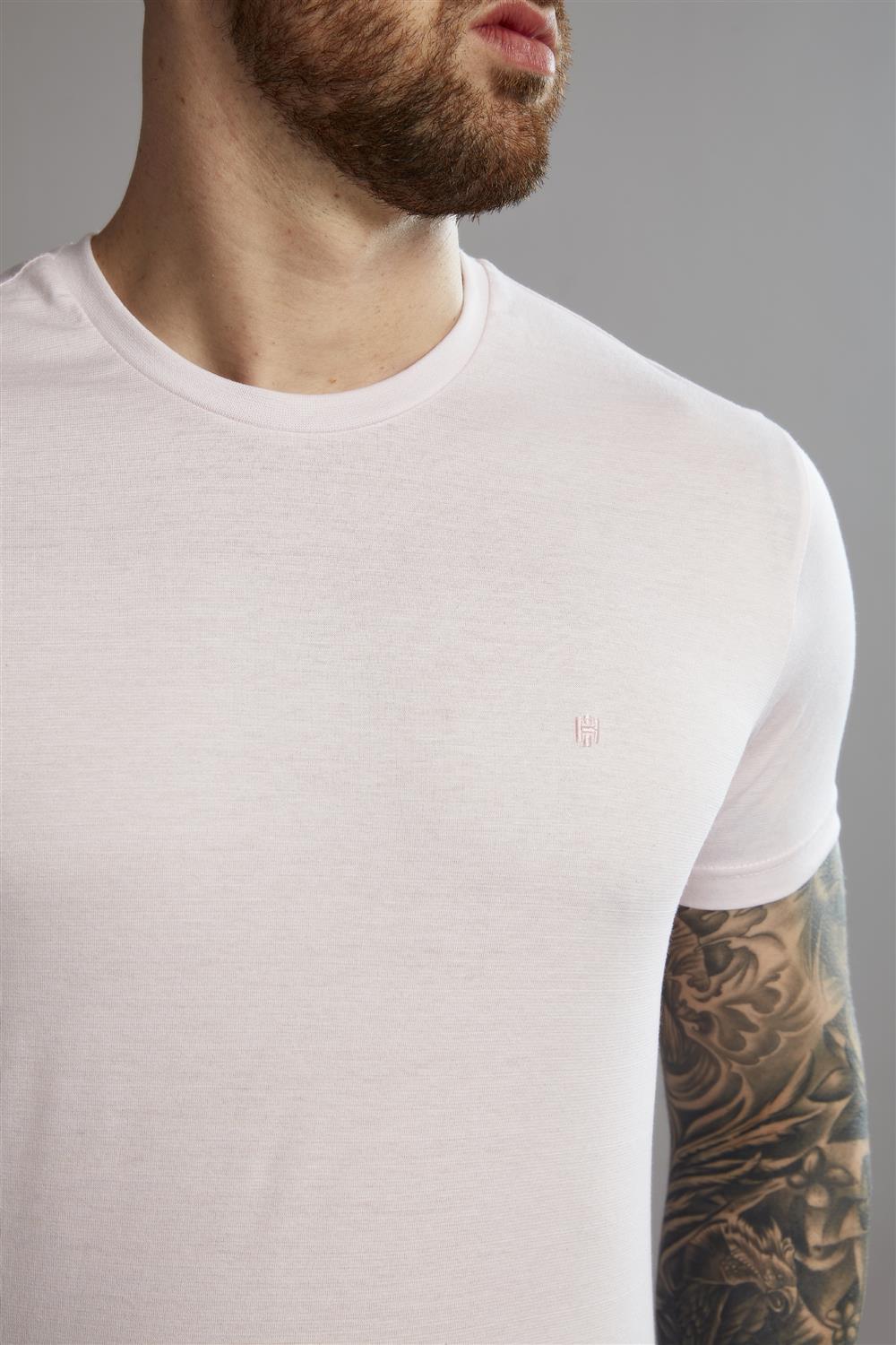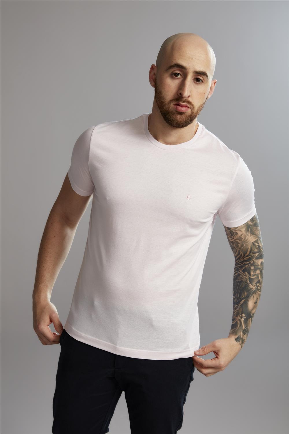 Camiseta Manga Curta Pima Slim Fit - Rosa / Branco