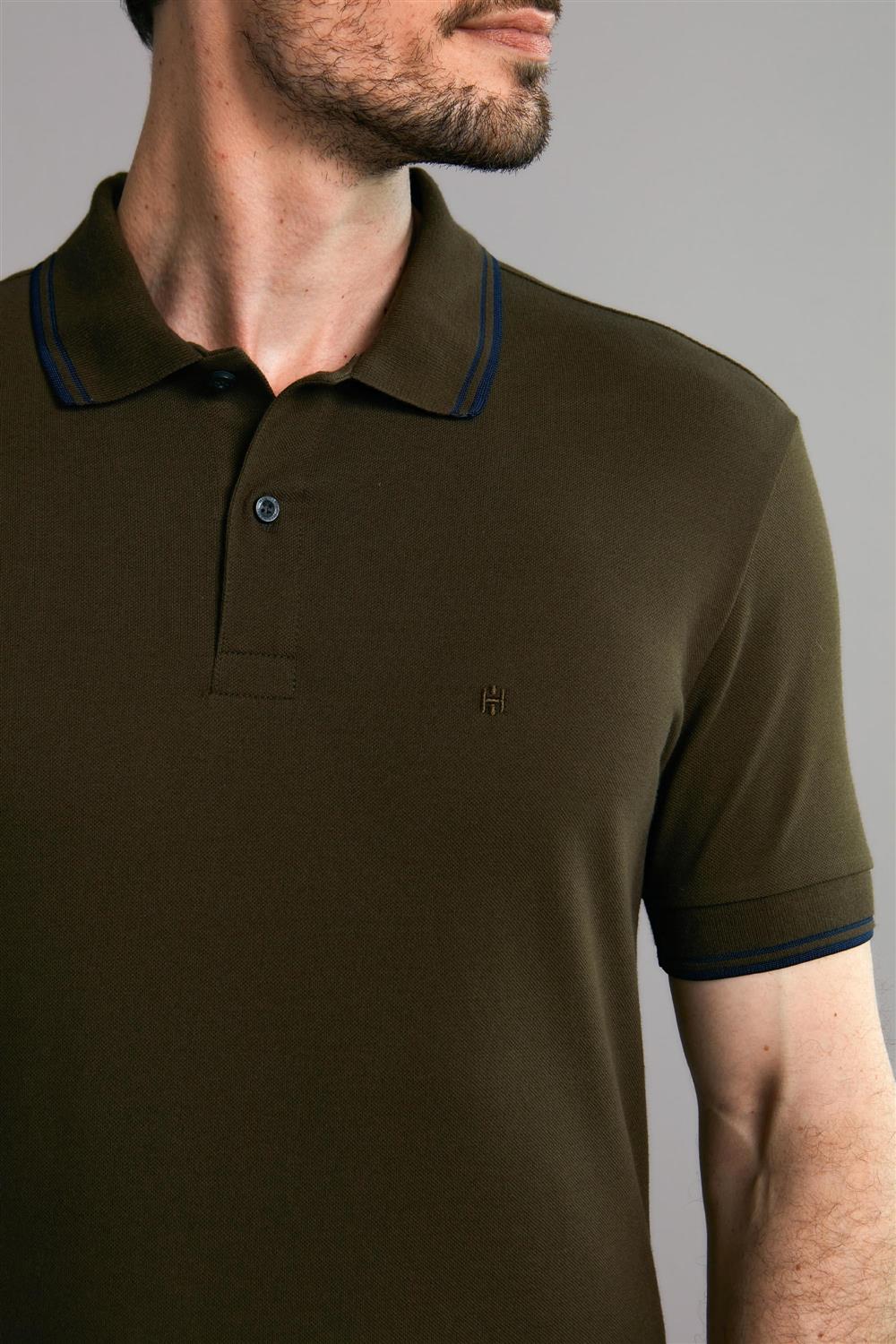 Polo Manga Curta Piquet Básica Slim Fit - Verde Azeitona