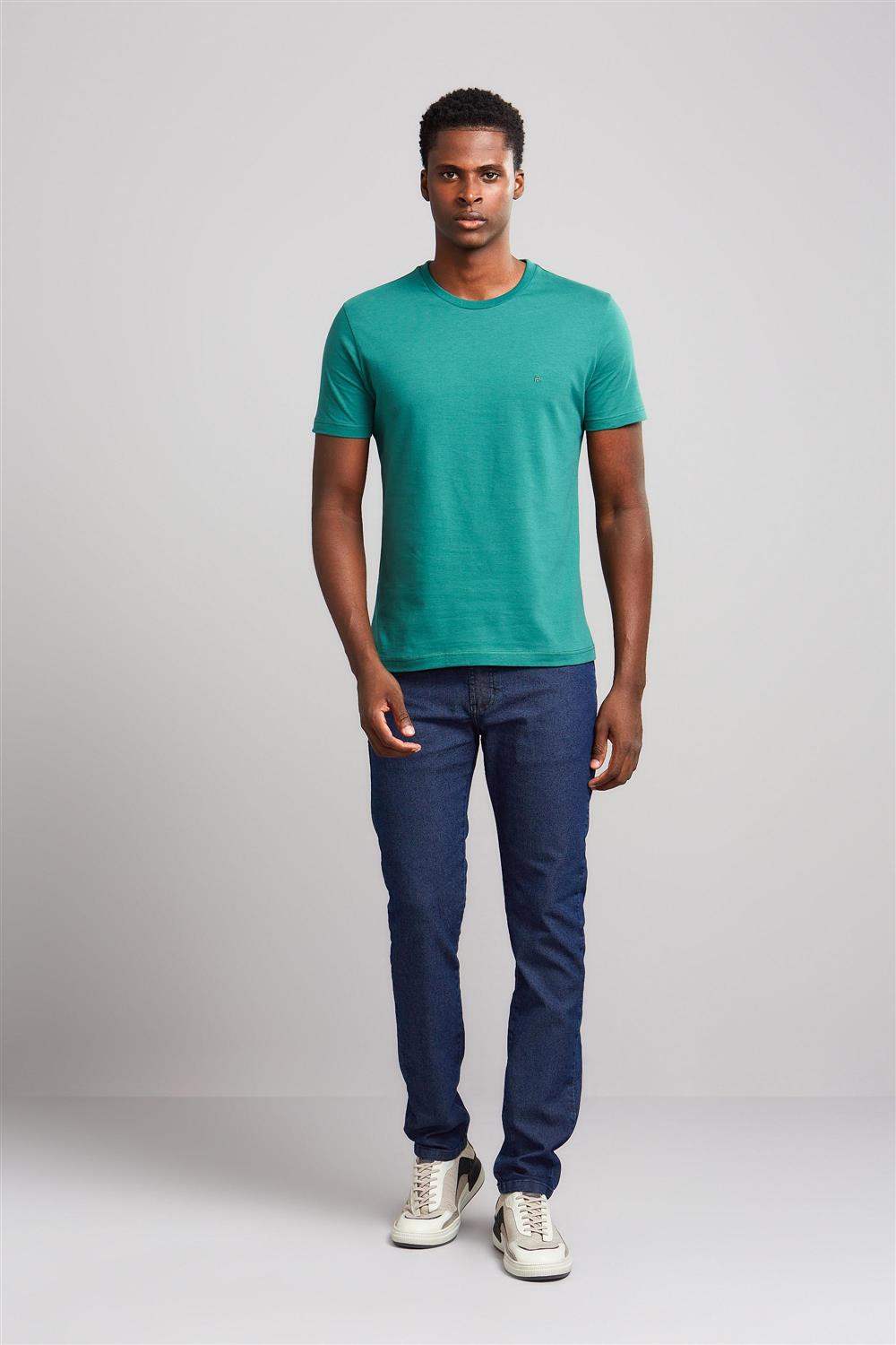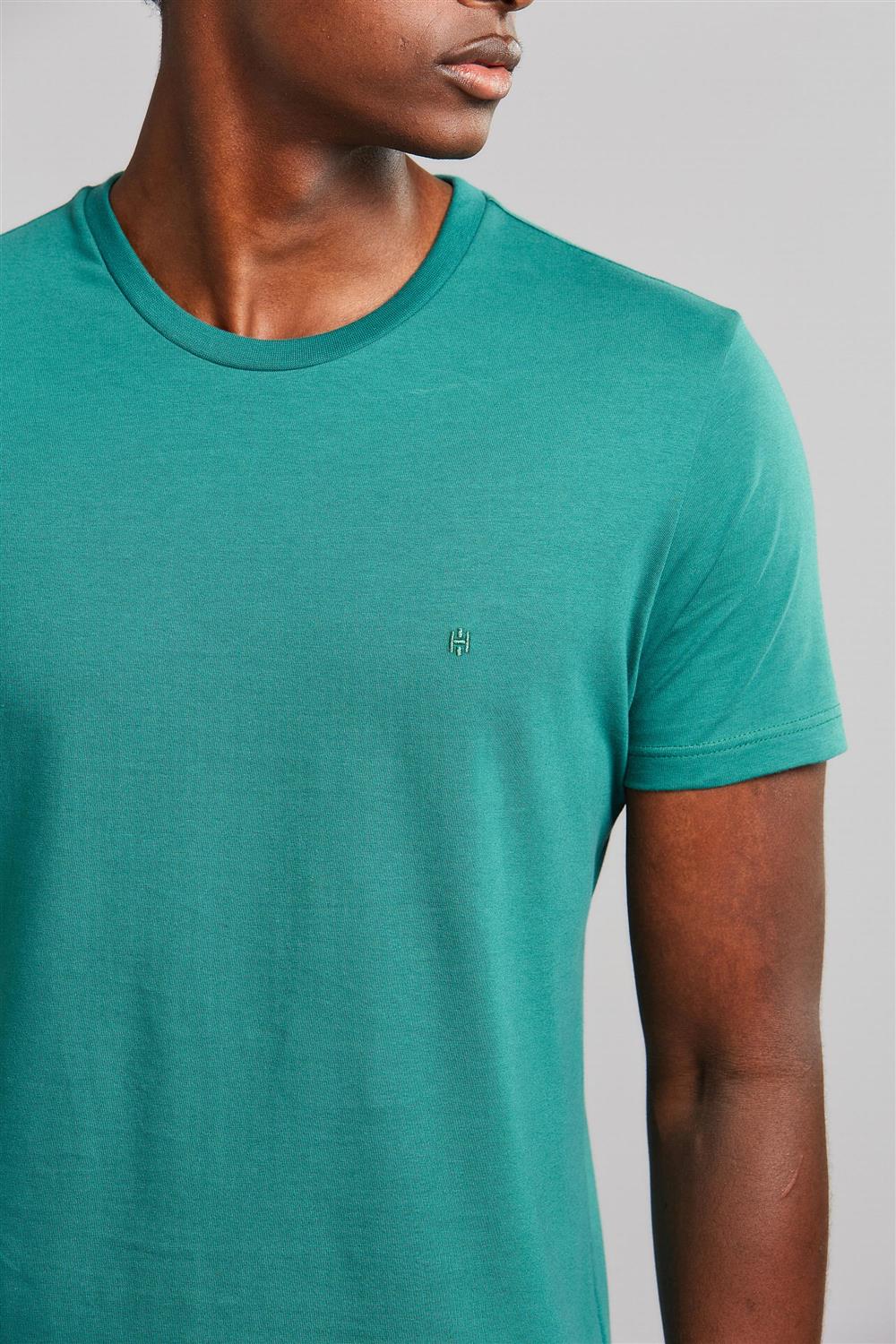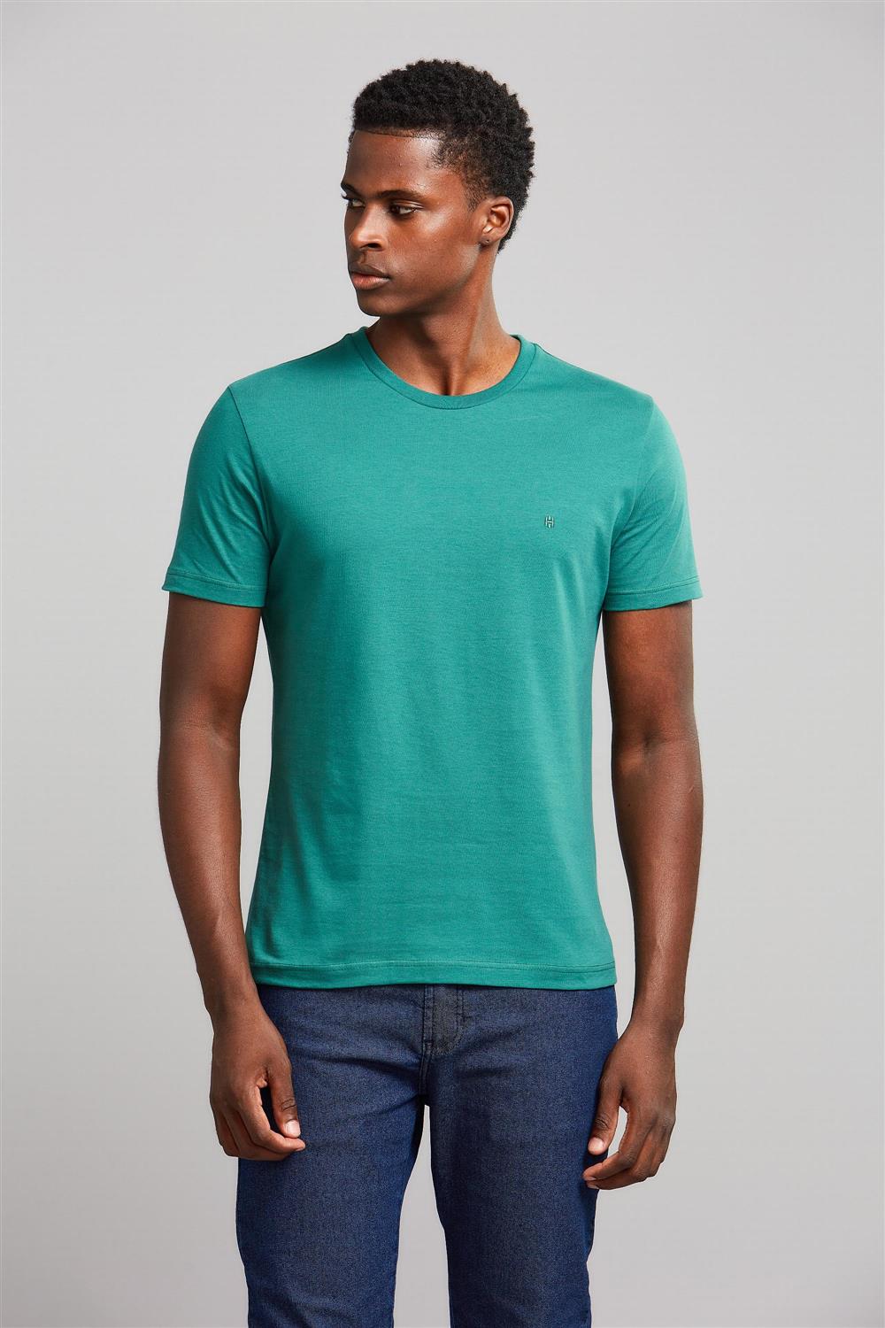 Camiseta Manga Curta Malha Básica Slim Fit - Verde Alamo