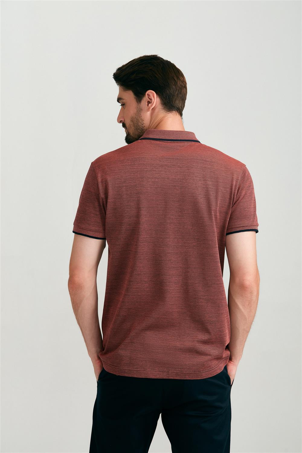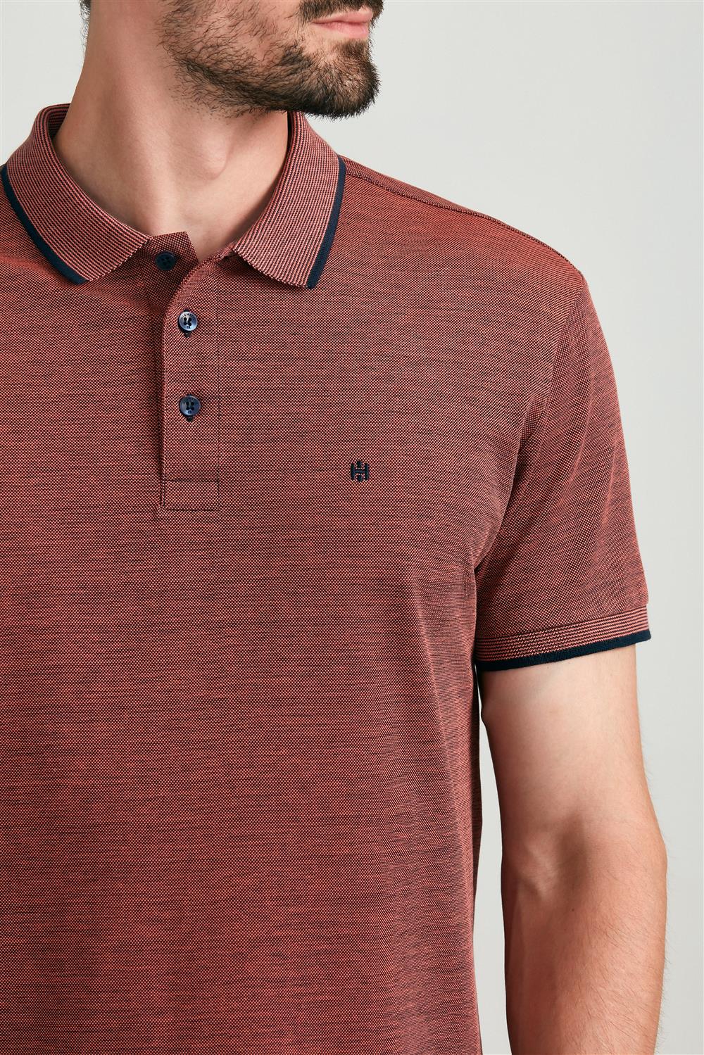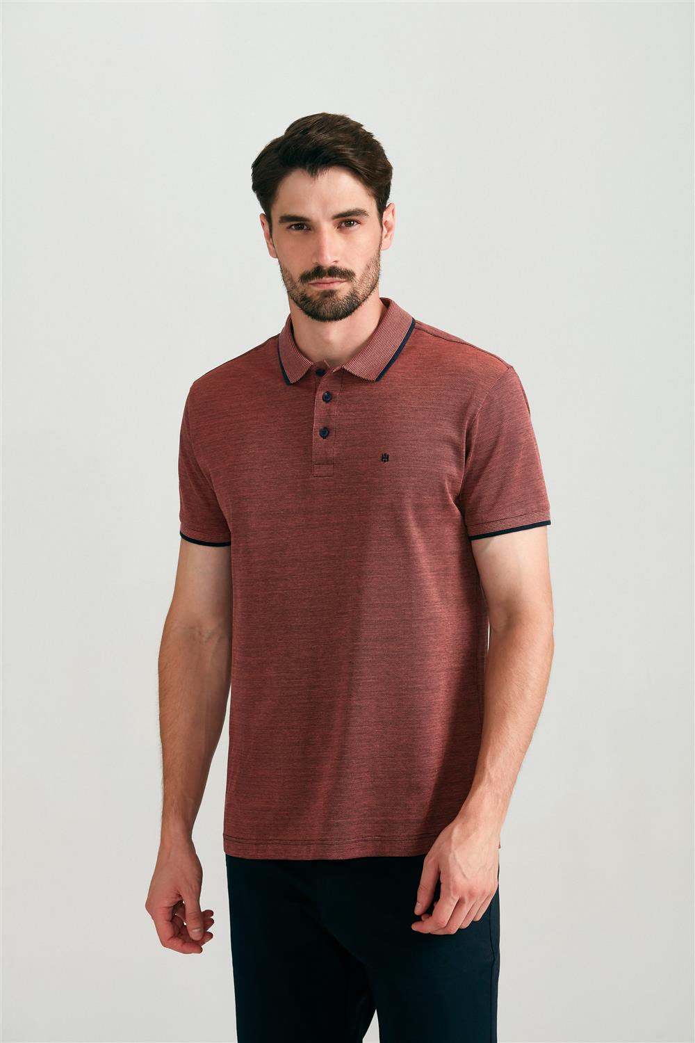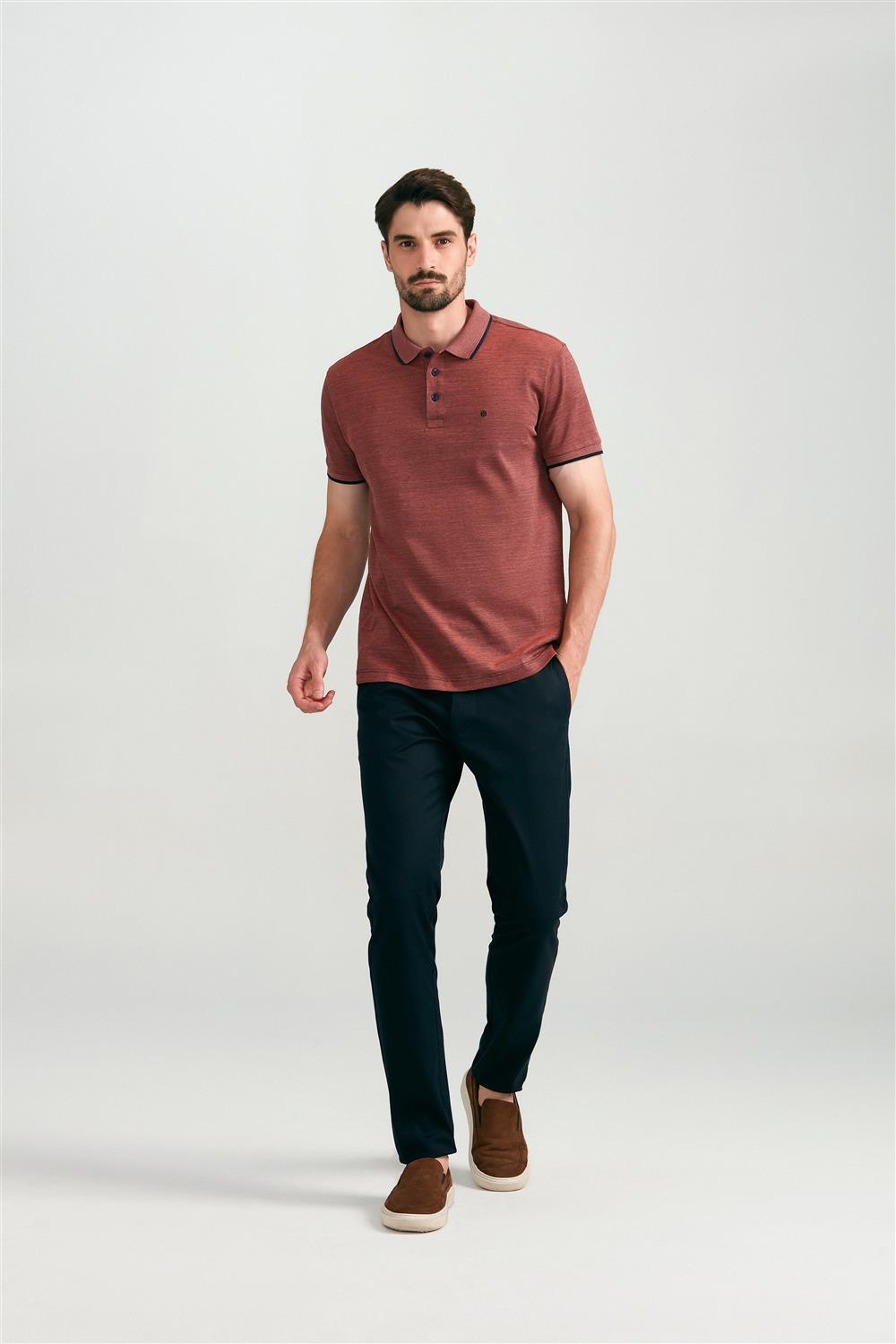 Polo Manga Curta Pima Slim Fit - Azul Marinho / Rosa Salmão