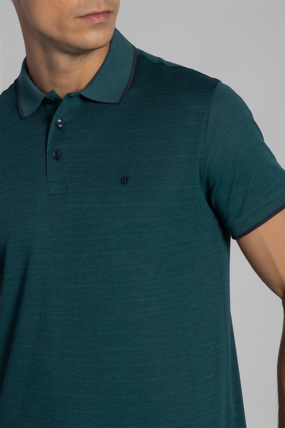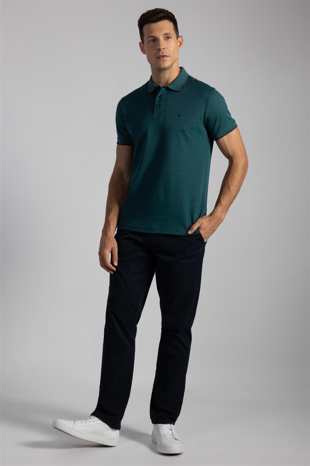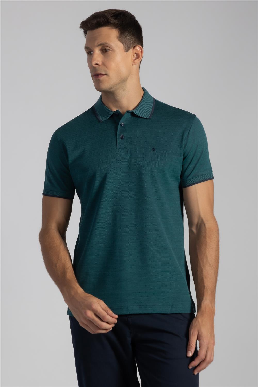 Polo Manga Curta Pima Slim Fit - Azul Marinho / Verde Oliva