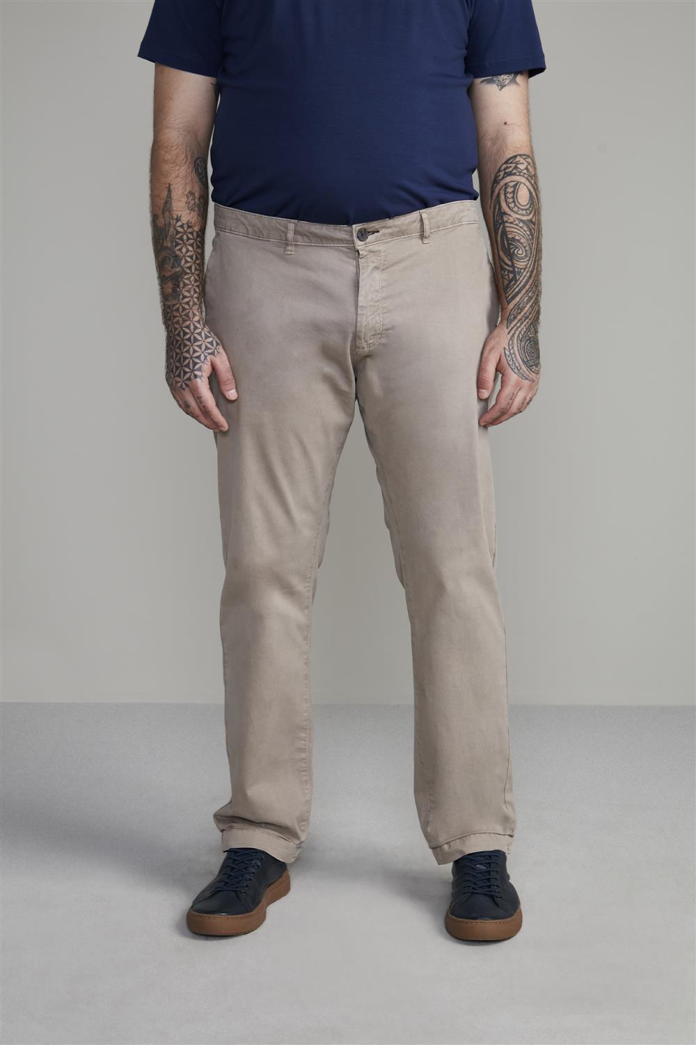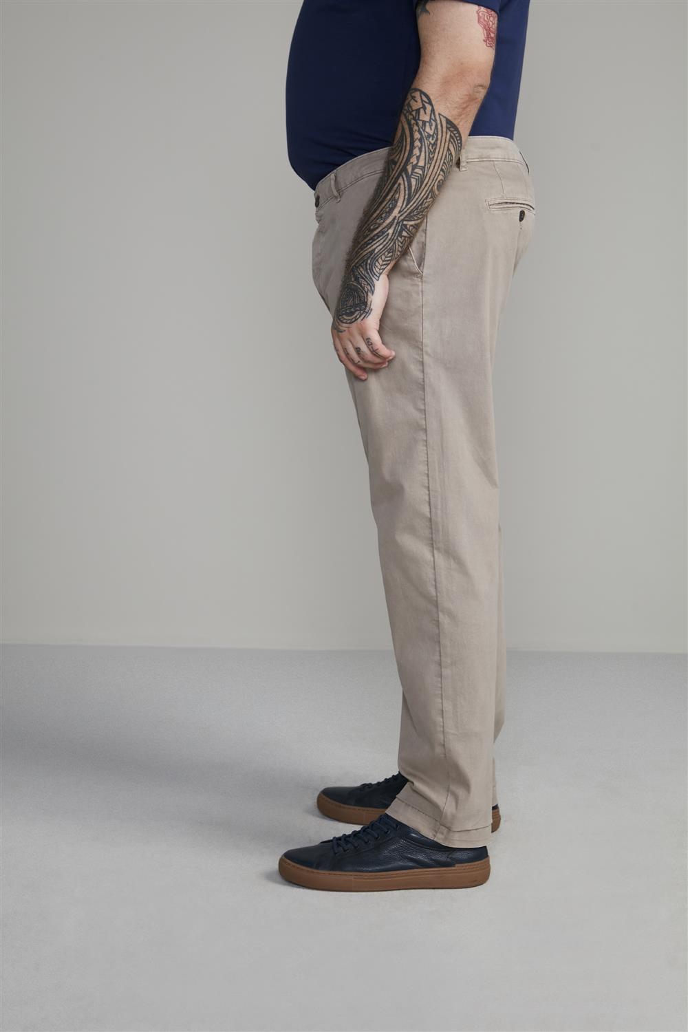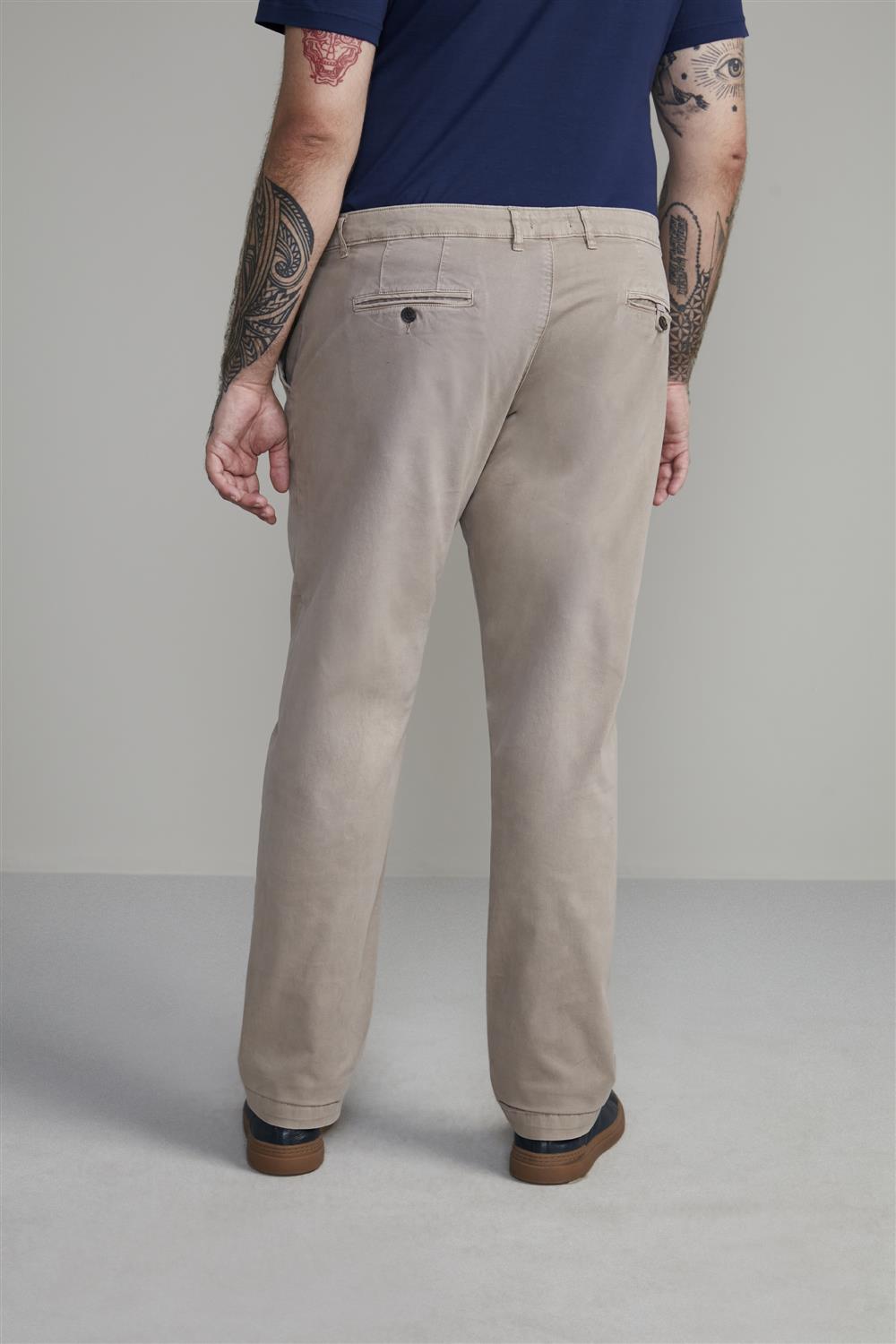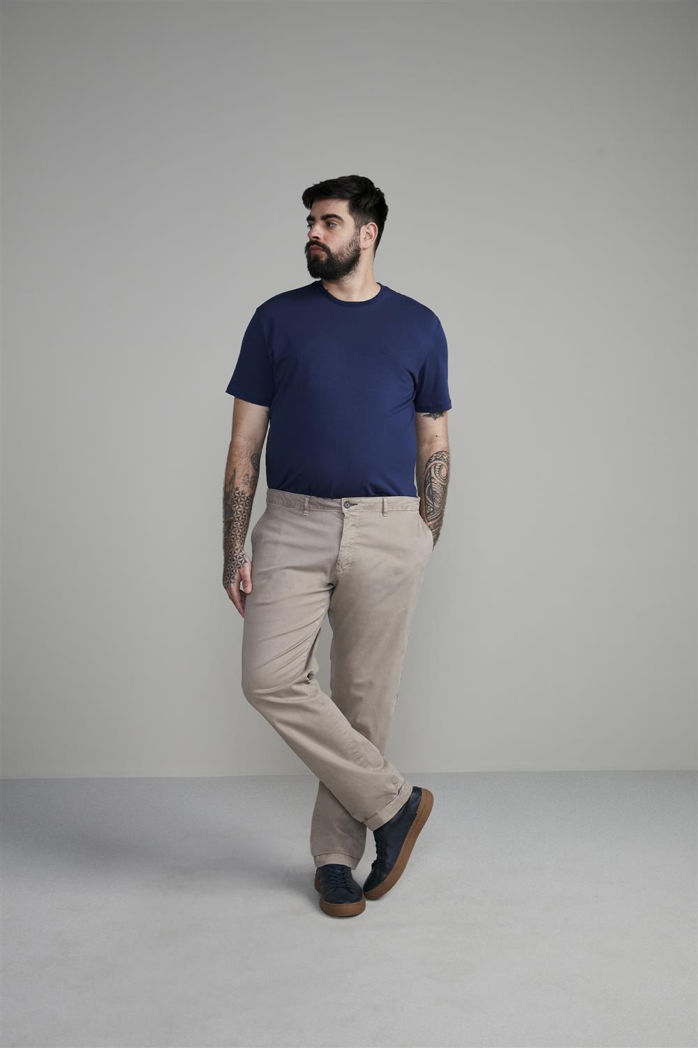 Calça masculina produzida em sarja de algodão e elastano. A sarja é um tecido penteado e mercerizado com ligamento de fios em diagonal tornando-a muito resistente e durável.