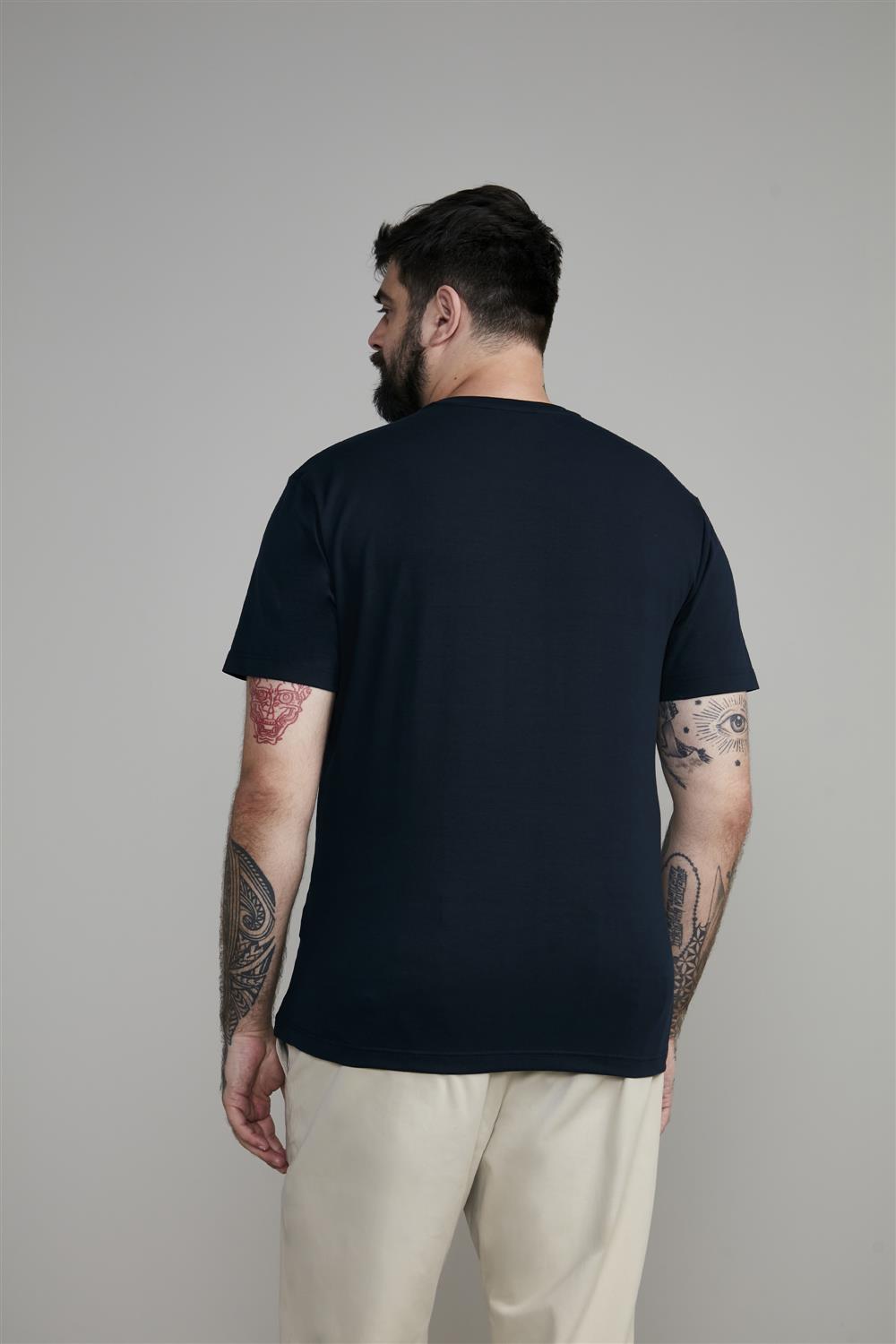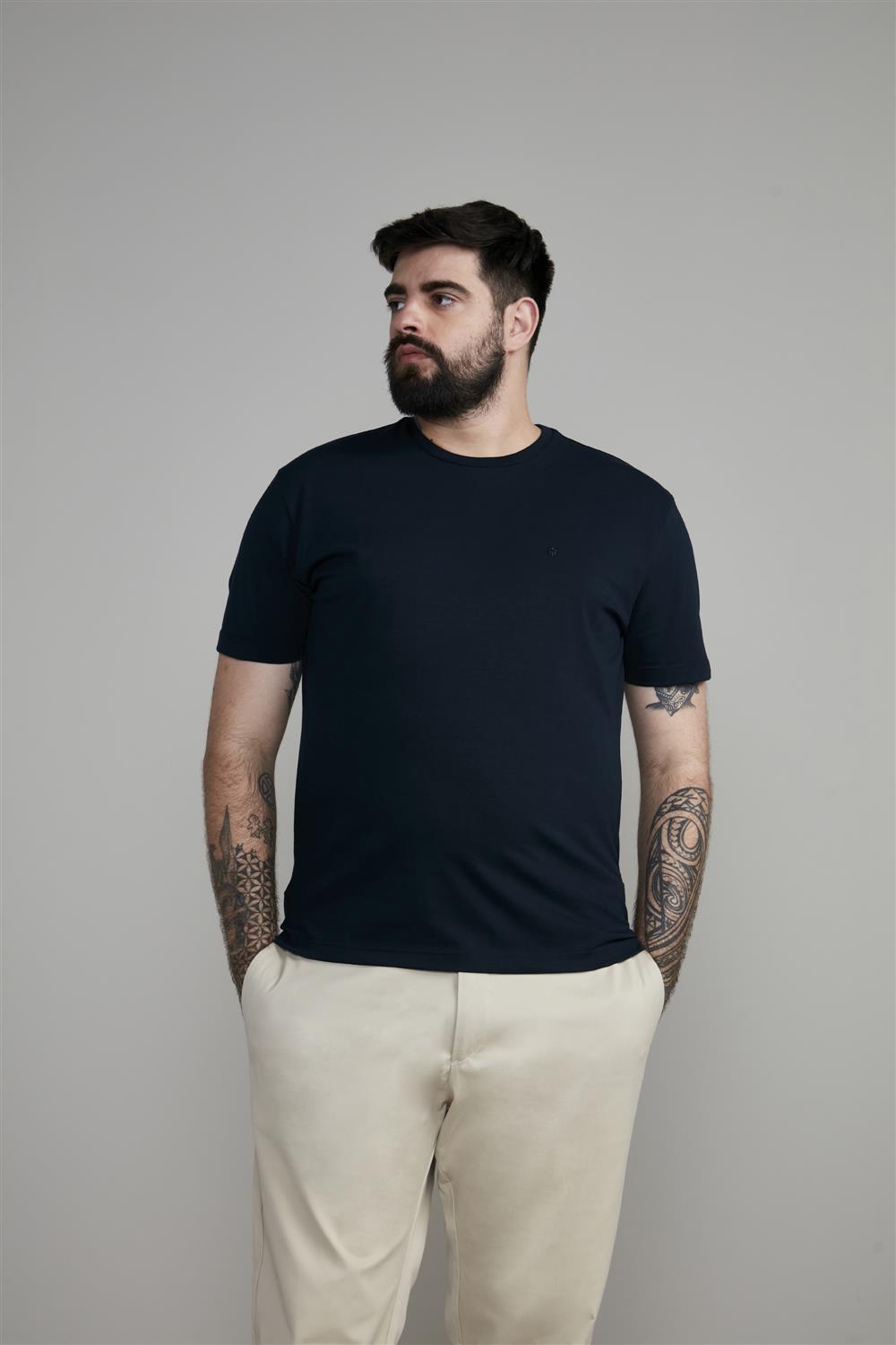 Camiseta Manga Curta Malha Básica Slim Fit - Azul Marinho