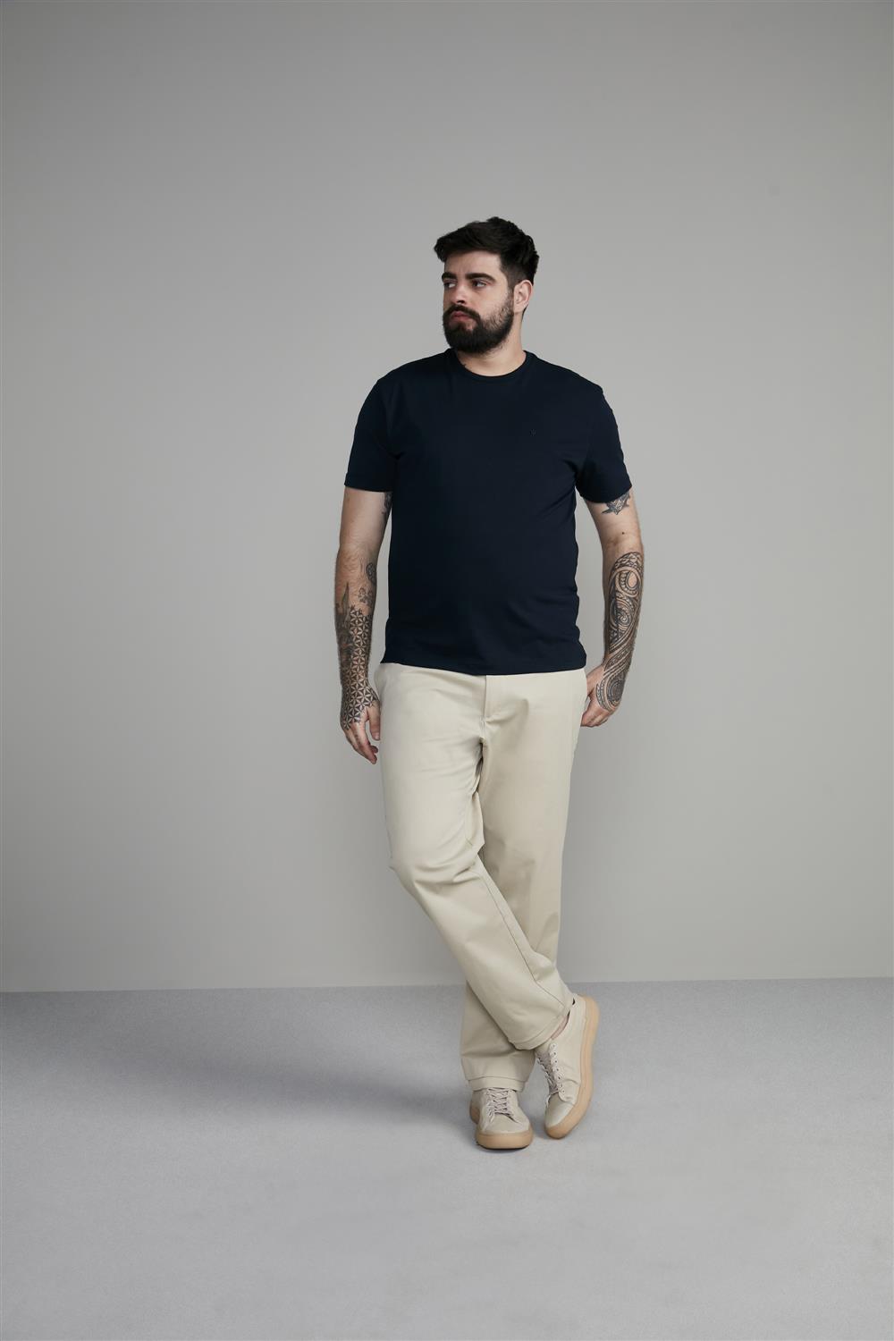 A camiseta lisa masculina é confeccionada em malha de algodão e elastano, possui modelagem slim fit, elasticidade, mangas curtas, gola redonda e caimento leve. Apresenta forma ajustada ao corpo, proporcionando uma silhueta marcada ao homem que veste.