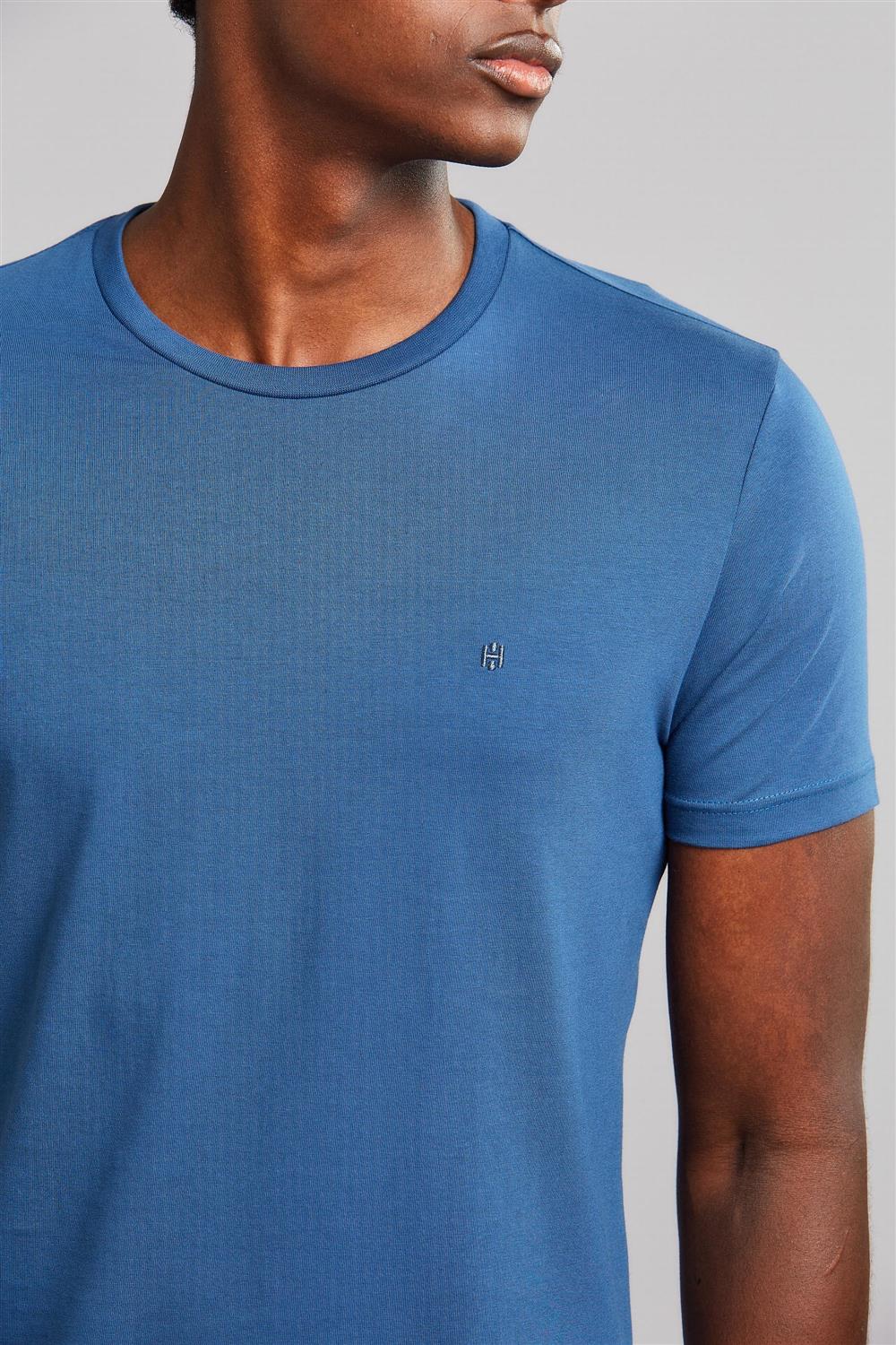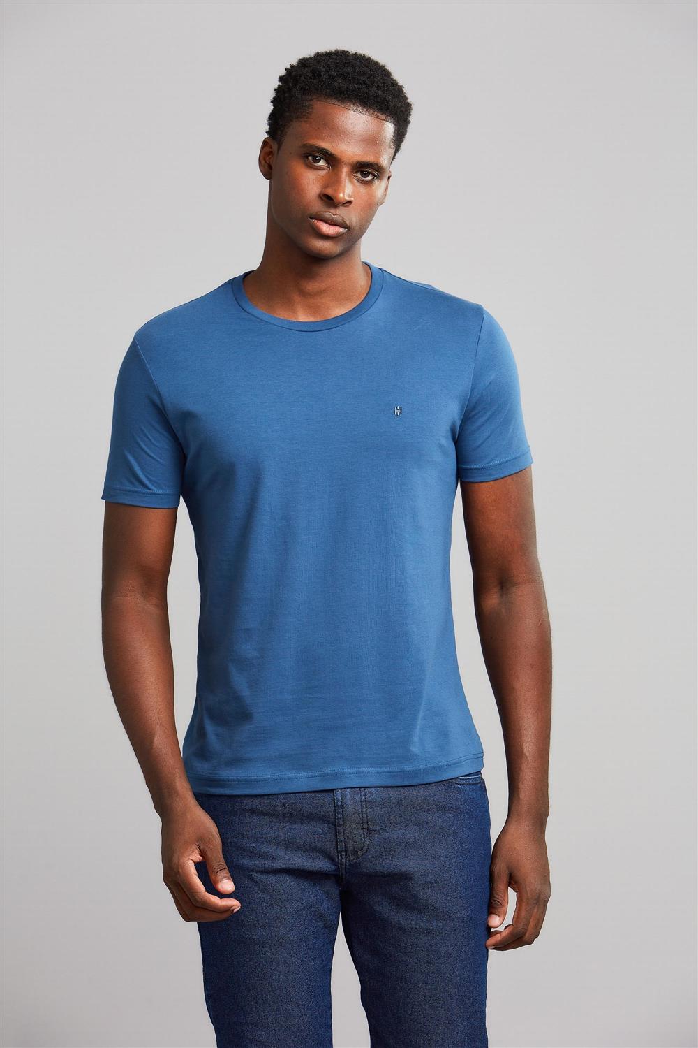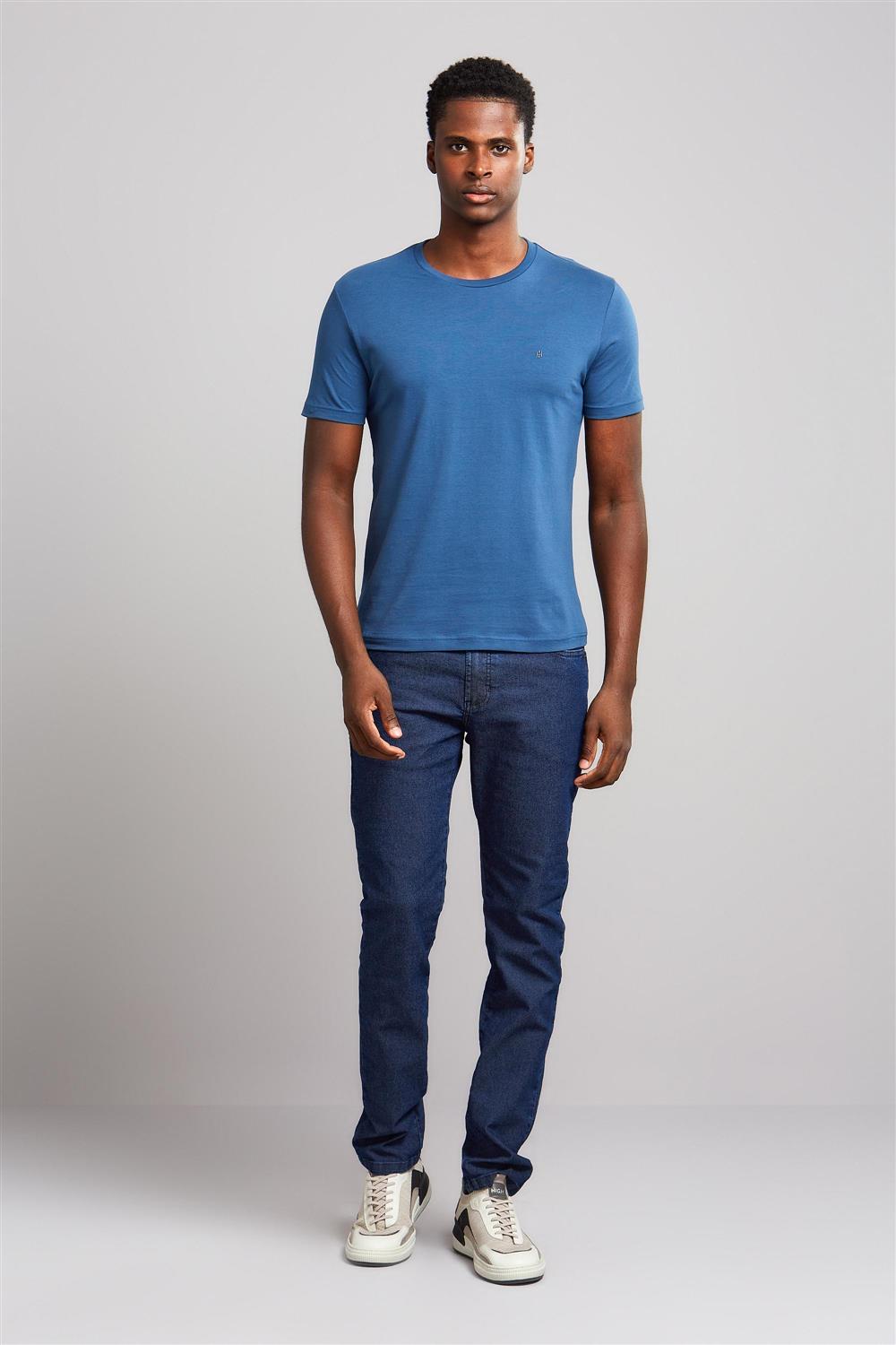 Camiseta Manga Curta Malha Básica Slim Fit - Azul Noturno