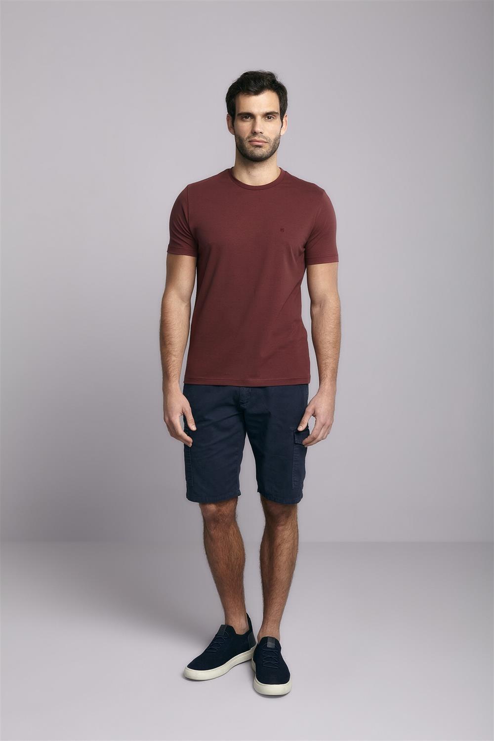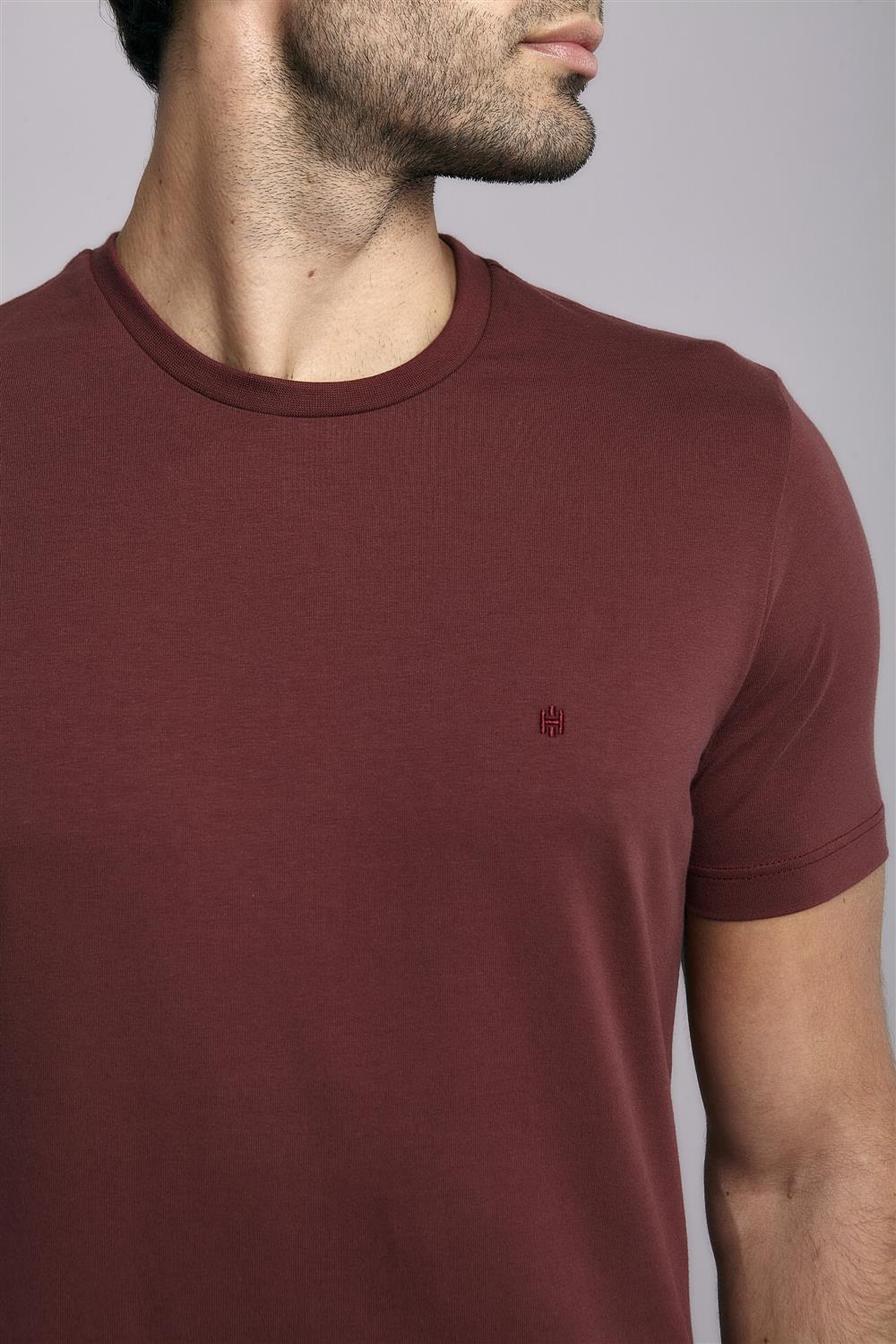 Camiseta Manga Curta Malha Básica Slim Fit - Marrom Avermelhado