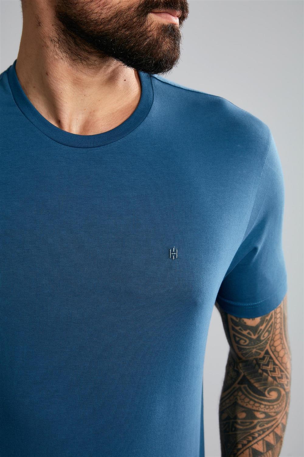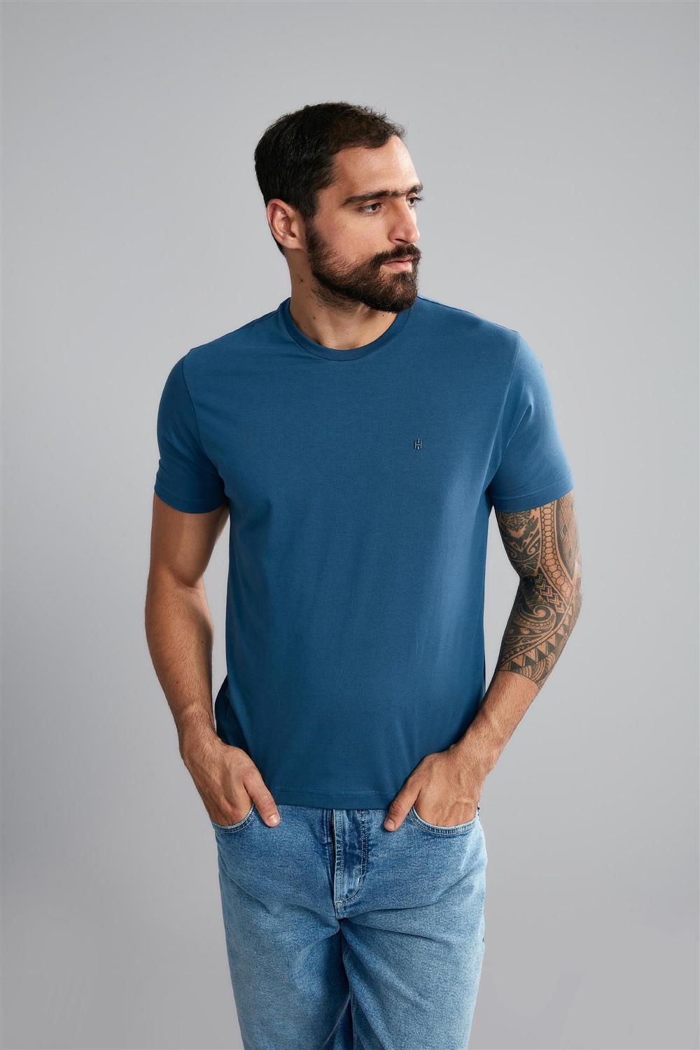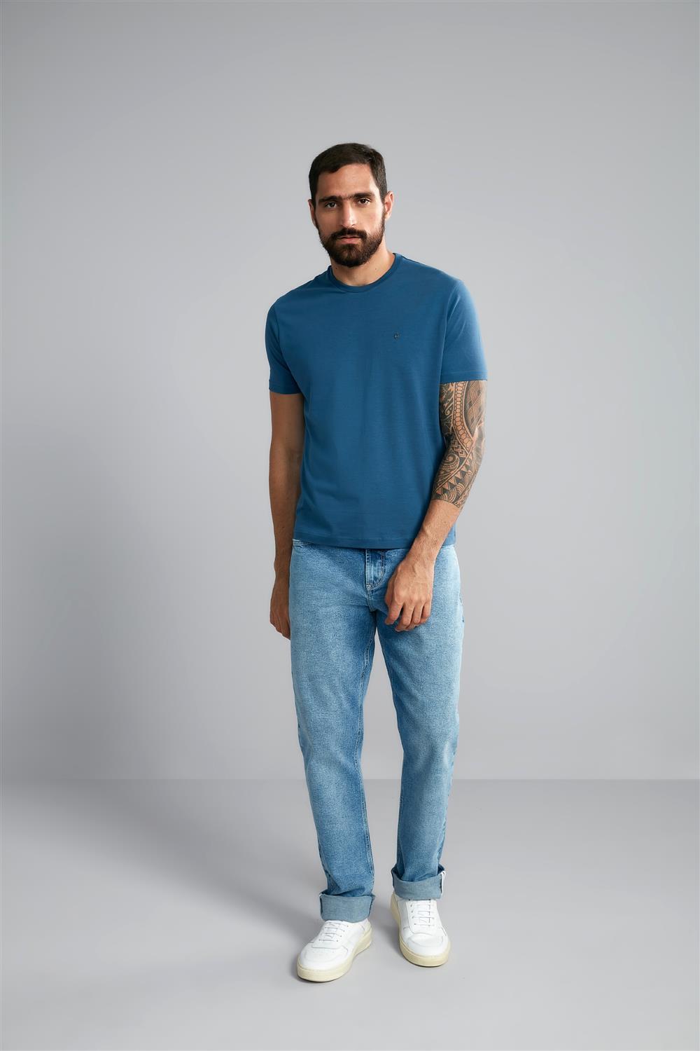 Camiseta Manga Curta Comfort Malha Básica - Azul Noturno