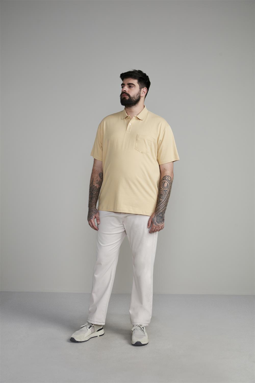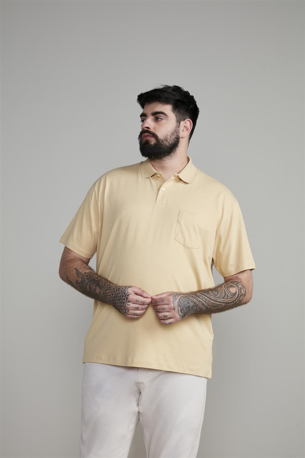 Polo Manga Curta com Bolso Comfort Malha Básica - Amarelo Claro