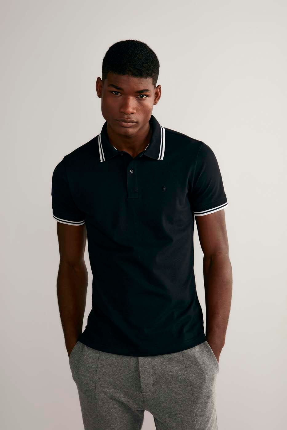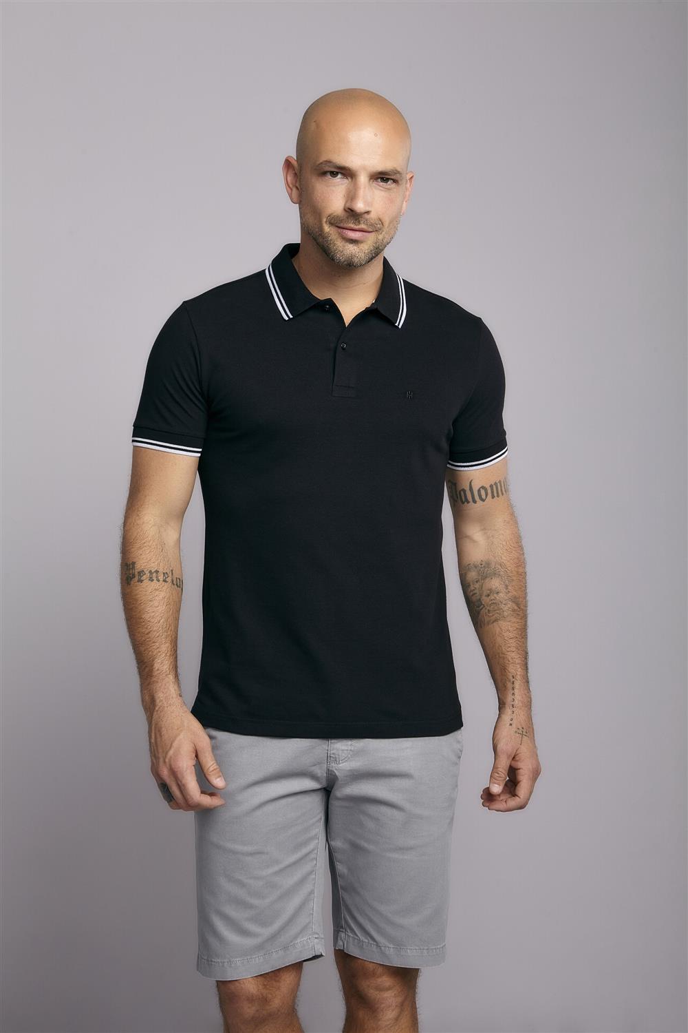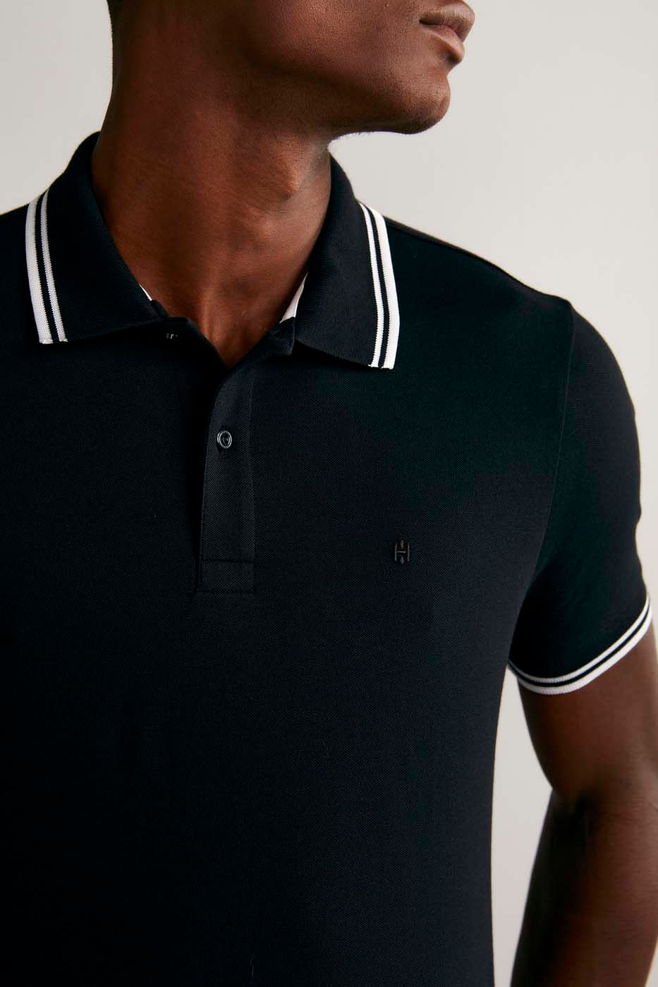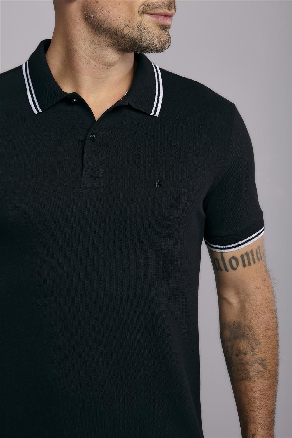 Polo Manga Curta Piquet Básica Slim Fit - Preto