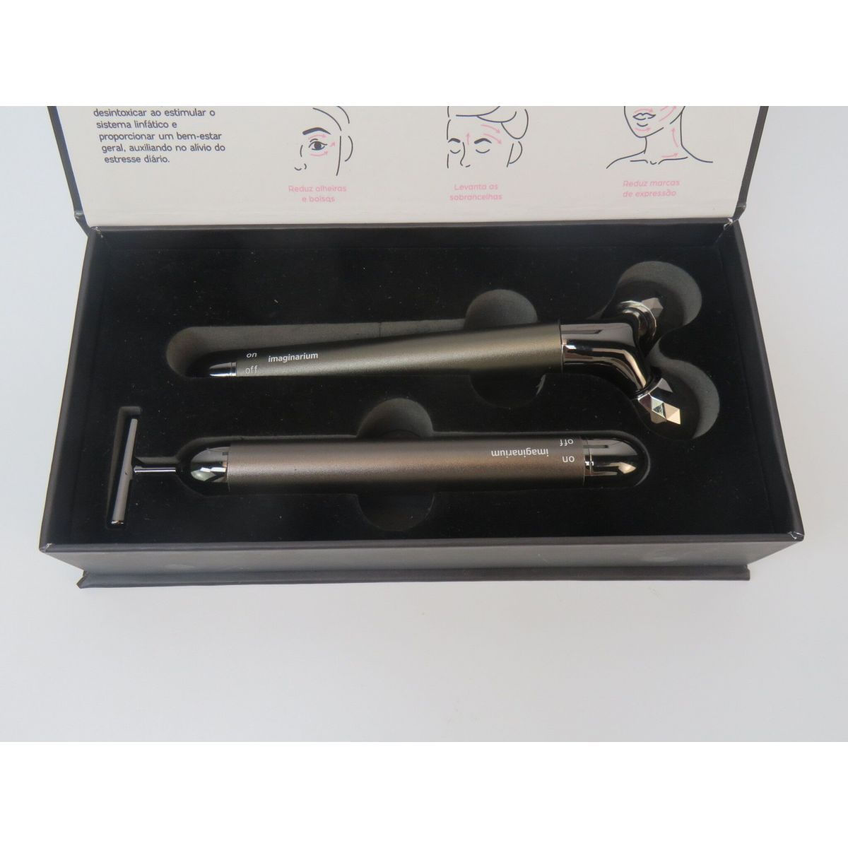 Contando com 2 massageadores com formatos e funcionalidades diferentes, esse kit está aqui para te ajudar a manter a sua pele sempre radiante, então se liga só pra saber como cada um deles funciona: