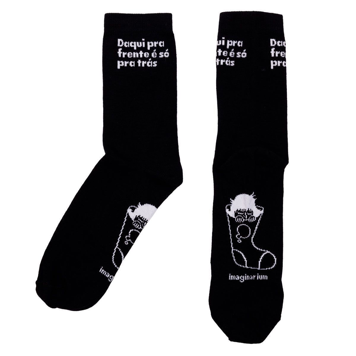 Super presenteável e contando com uma frase sarcástica impressa (no cano) e o divertido logotipo da coleção (impresso na sola), nossa Meia Amarguinhos Daqui Pra Frente conta com uma textura super macia e bastante conforto para você arrasar nos looks.