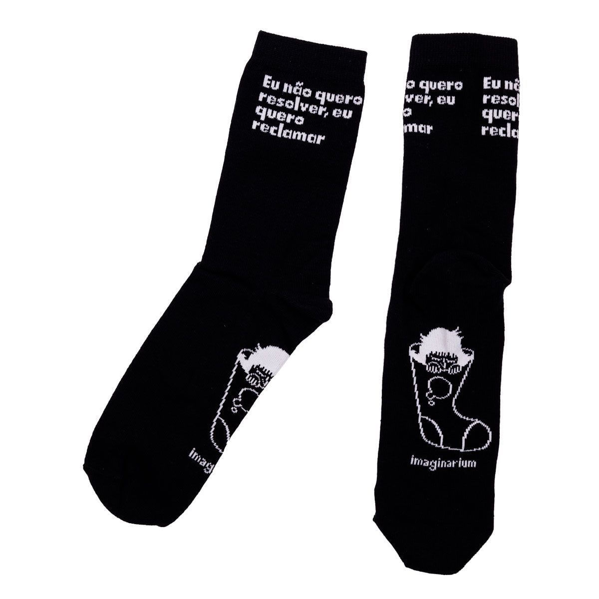 Super presenteável e contando com uma frase sarcástica impressa (no cano) e o divertido logotipo da coleção (impresso na sola), nossa Meia Amarguinhos Quero Reclamar conta com uma textura super macia e bastante conforto para você arrasar nos looks.