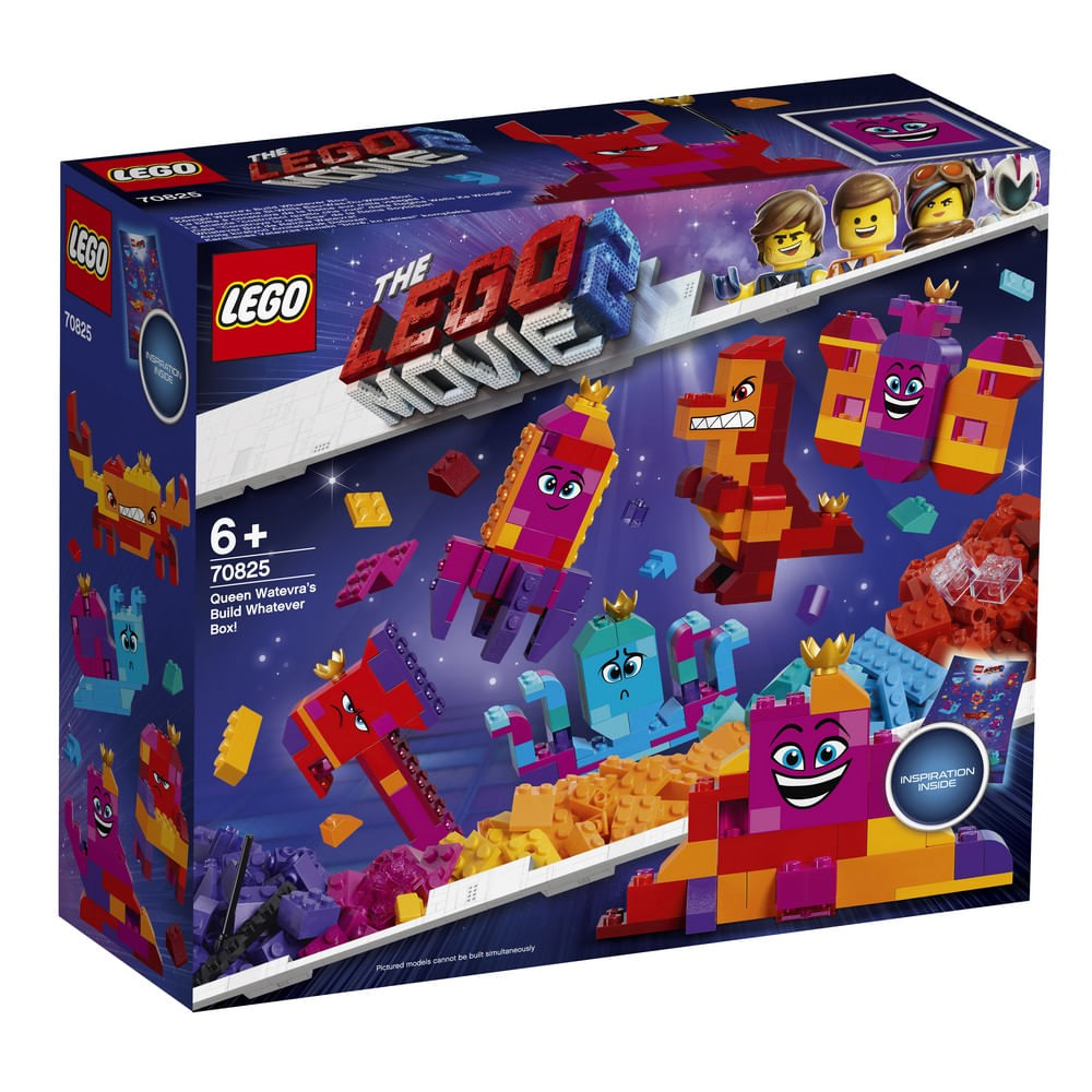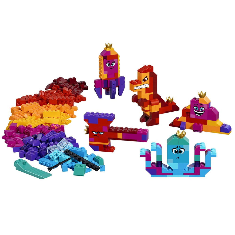 Transforme a Rainha Watevra Wa'Nabi em qualquer forma que você quiser! •Possui blocos multicoloridos LEGO® para construir e reconstruir o personagem Raine Watevra Wa'Nabi em 15 formas diferentes: pilha de tijolos / Rainha; carro; borboleta, martelo; diabo; vulcão; violoncelo; baleia; polvo; gorila; dinossauro; Dragão; bastão; foguete; e uma torradeira. •Este conjunto THE LEGO® MOVIE 2 ™ inclui instruções para construir cada modelo, além de ideias inspiradoras para construir a rainha em ainda mais formas. •Recrie cenas divertidas do THE LEGO® MOVIE 2 ™ com este criativo brinquedo de construção. •A rainha Watevra Wa'Nabi em forma de pilha de tijolos mede 11cm de altura, 7cm de largura e menos de 1cm de profundidade. •São 455 peças - Recomendado para fãs LEGO a partir de 6 anos de idade. Não recomendável para menores de 3 anos, por conter partes pequenas.