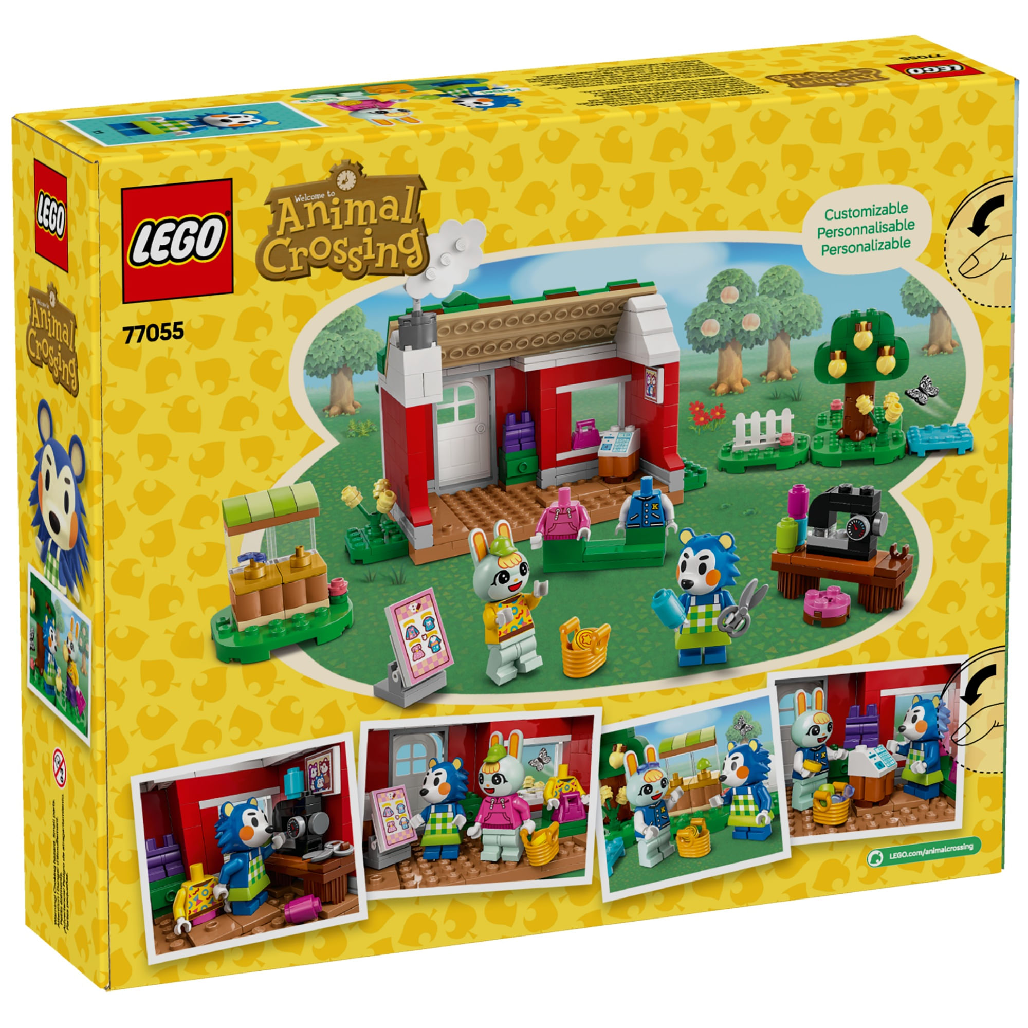 As crianças podem remontar as placas de base para alterar o jardim ao redor da loja de roupas e até mesmo trocar a porta e o telhado com outros conjuntos LEGO Animal Crossing (vendidos separadamente). As crianças também podem aproveitar uma aventura de construção fácil e intuitiva com o aplicativo LEGO Builder, onde podem aumentar o zoom e girar seu brinquedo criativo em 3D e acompanhar seu progresso.