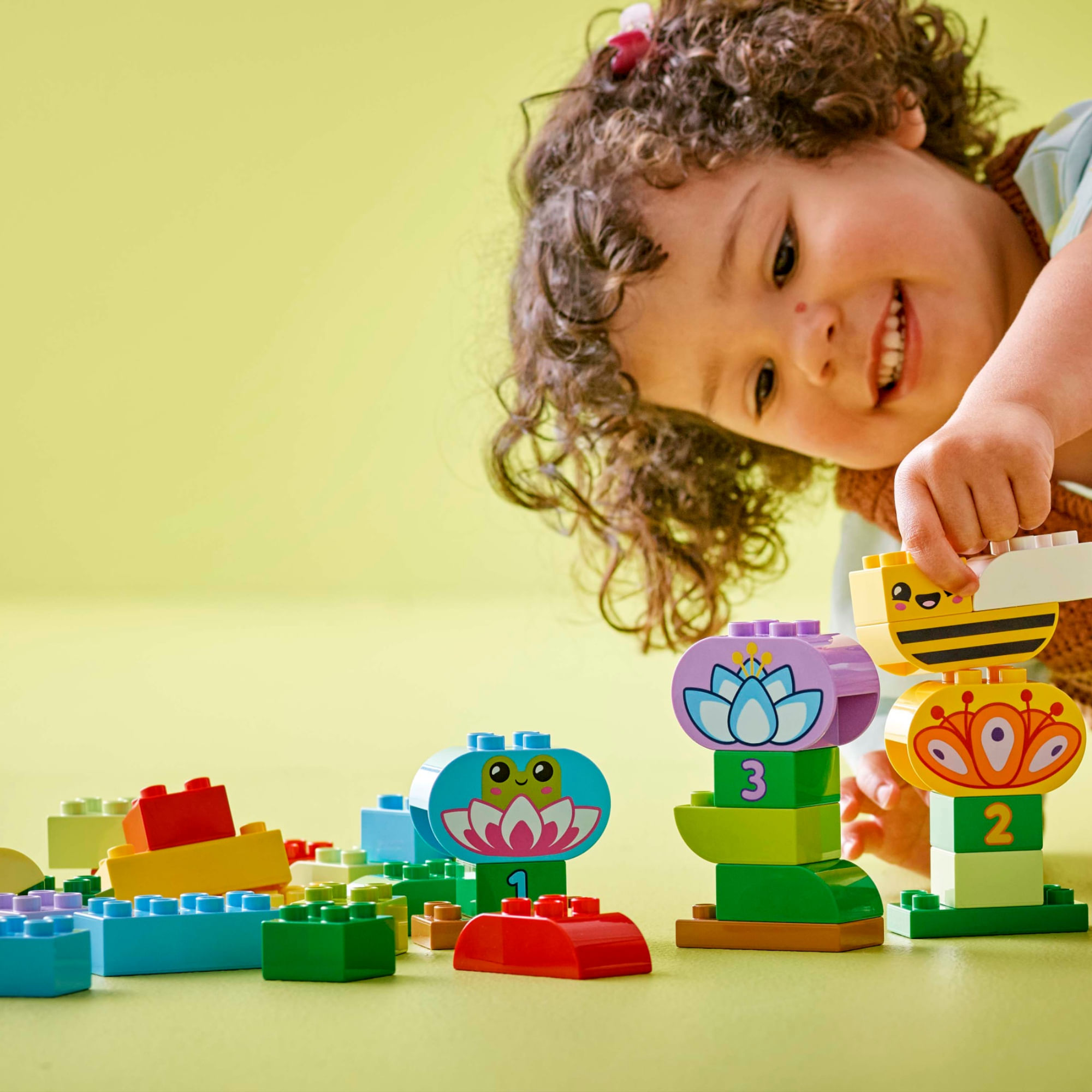Inclui 3 personagens animais LEGO® DUPLO® – Este brinquedo da natureza para crianças em idade pré-escolar vem com 3 figuras: um sapo, uma borboleta de brinquedo e uma abelha