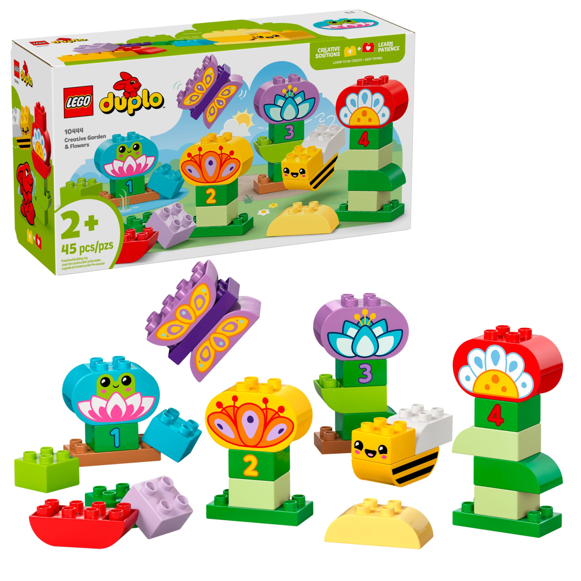 Ajude a criatividade e as habilidades motoras finas do seu filho a florescer com o brinquedo empilhável LEGO® DUPLO® Town Jardim Criativo e Flores (10444). Com 45 peças para construir flores coloridas e brinquedos fofos de animais e insetos LEGO DUPLO, este conjunto de construção inspira crianças criativas a construir um cenário de peças de beleza em constante mudança.