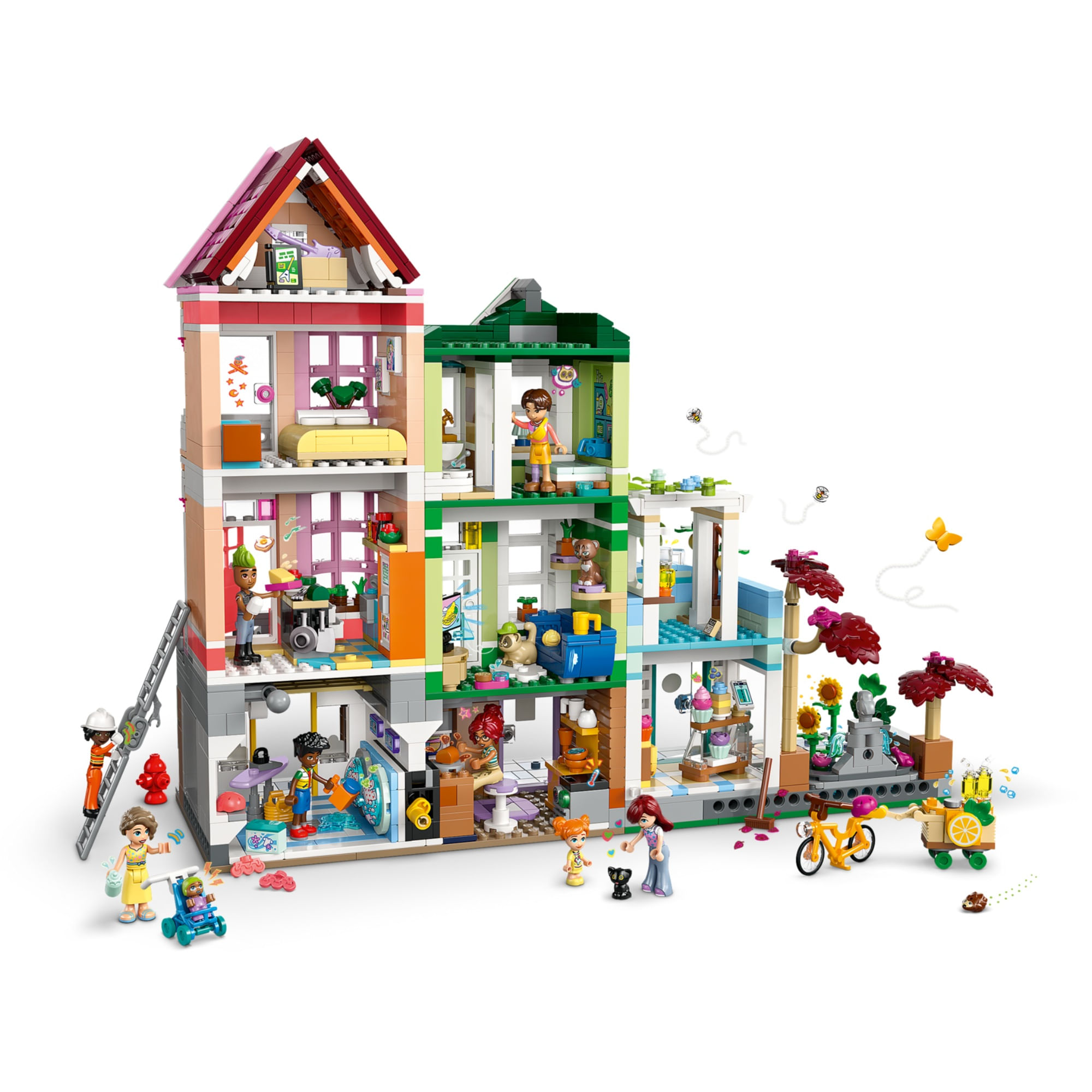 Construa as casas LEGO® – Os apartamentos apresentam detalhes divertidos e personalizados para os diferentes personagens, com muitos cômodos e acessórios para descobrir
