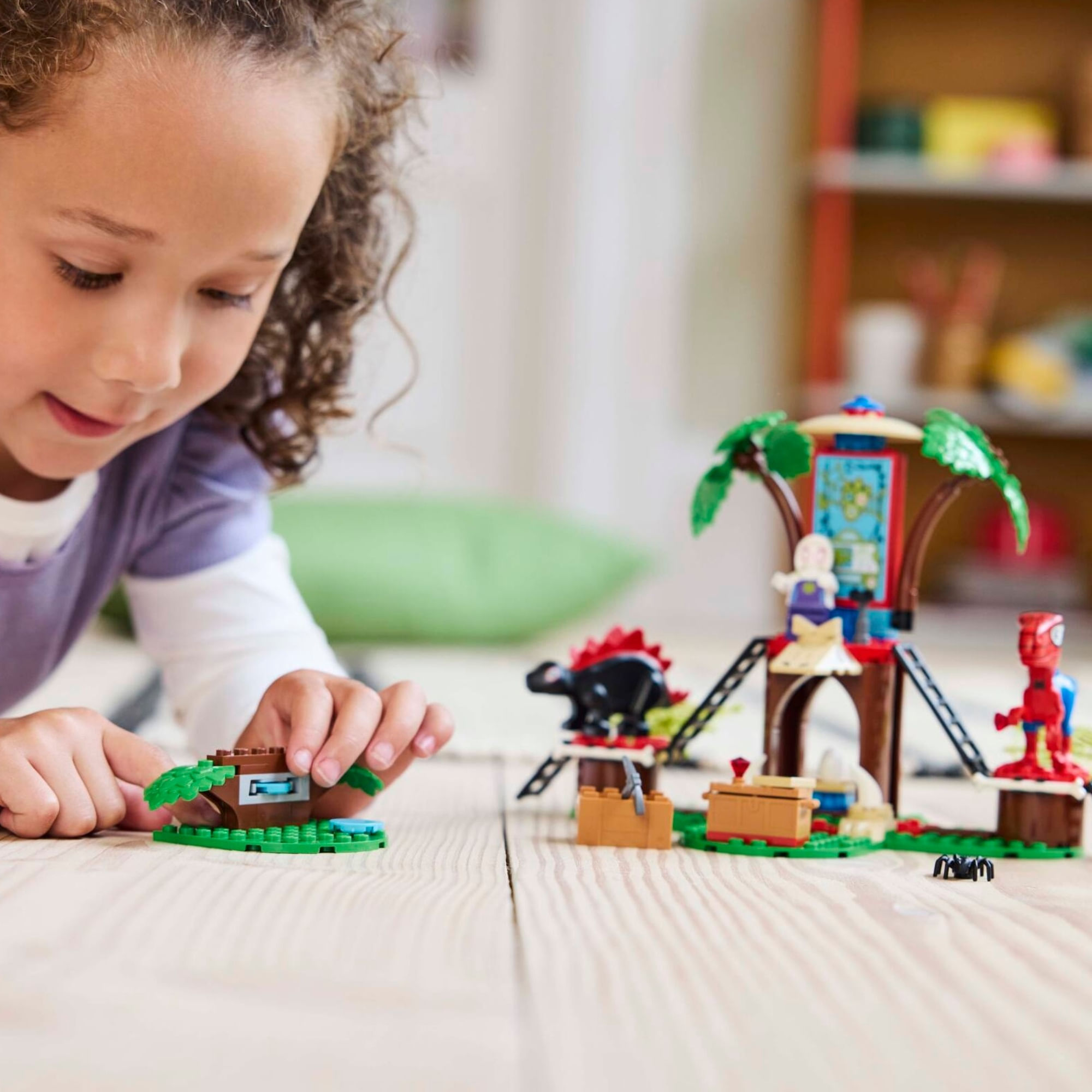 Aventuras na casa da árvore LEGO® – As crianças se juntam a Trapster, Ghost-Spider, Gobby-Raptor, Spidey-Rex, Dino-Spin e Trace-E para se divertir com heróis, vilões e dinossauros na casa da árvore da selva