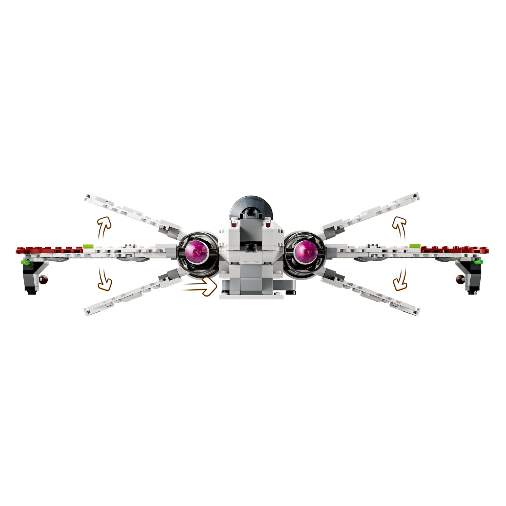 Caça estelar construído com peças LEGO® – Possui 3 cockpits que abrem, um espaço para R4-P44, 6 asas, incluindo 4 asas ajustáveis ??operadas por alavanca para modos de ataque e cruzeiro, e 2 atiradores com mola