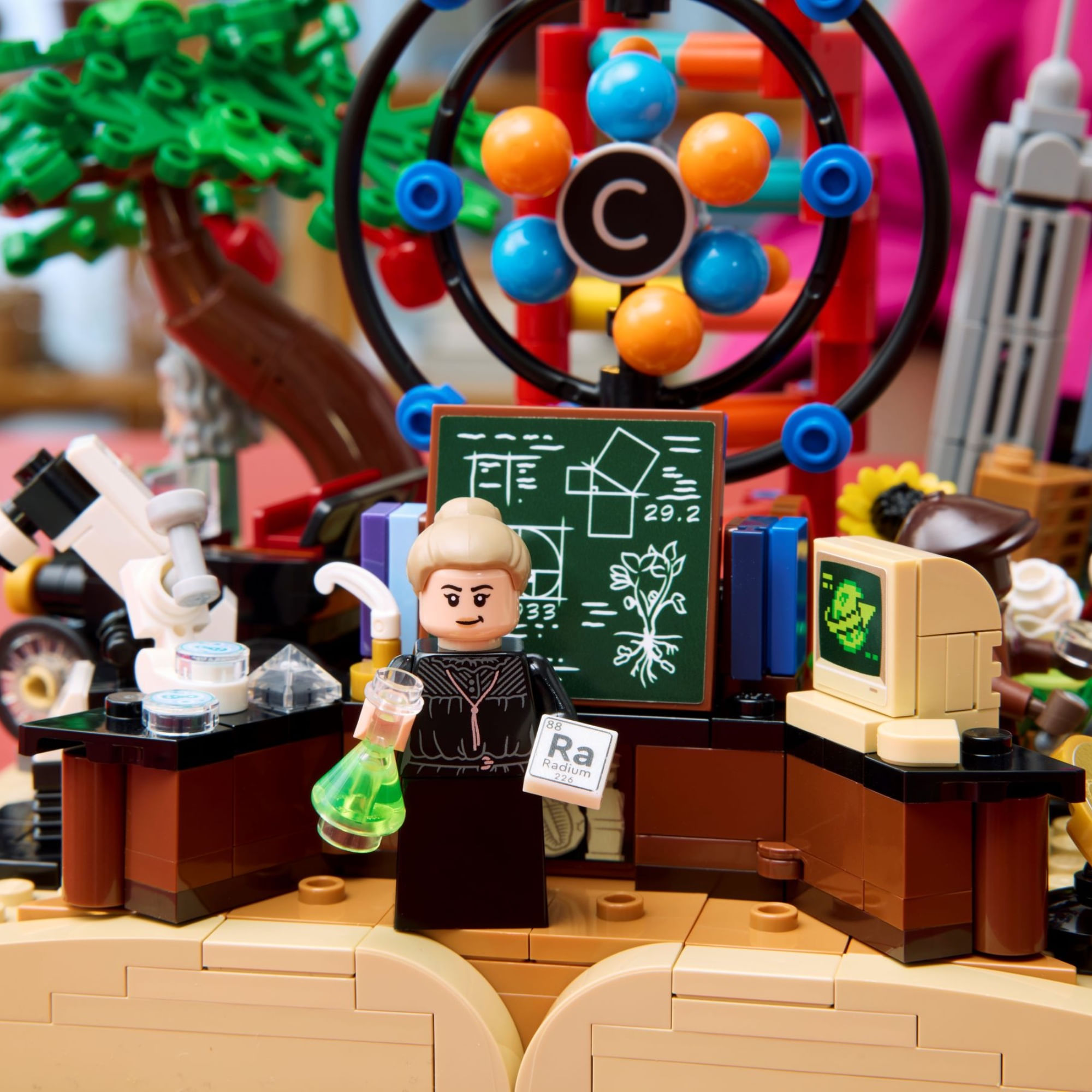 O conjunto inclui minifiguras LEGO de 3 cientistas famosos: Marie Curie, a primeira pessoa a ganhar 2 prêmios Nobel; Sir Isaac Newton, famoso por sua lei da gravitação universal; e o cientista agrícola pioneiro George Washington Carver.