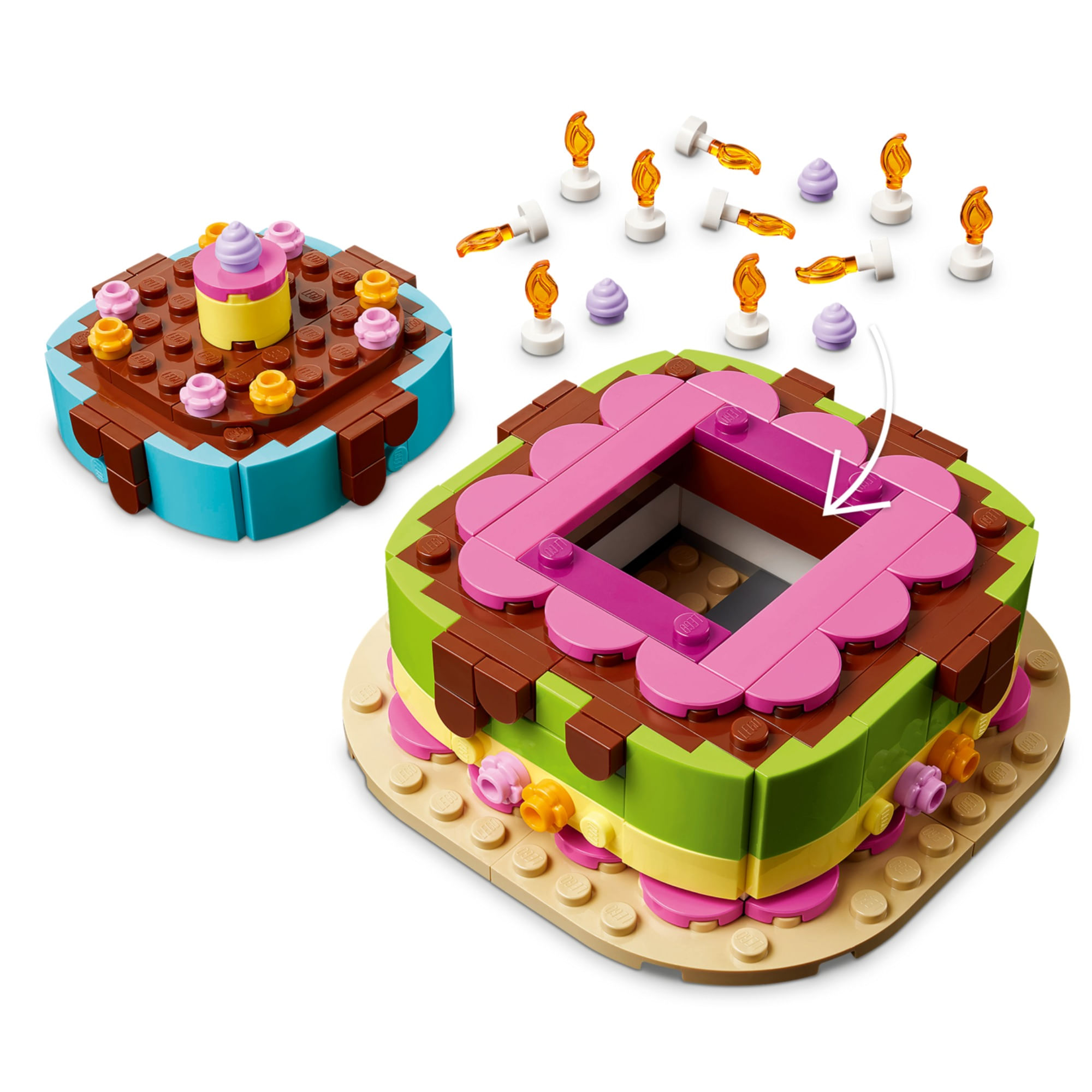 Compartimento escondido – O brinquedo do bolo de aniversário possui um compartimento escondido onde as decorações podem ser guardadas, tornando-o um conjunto LEGO® que pode ser usado para brincar ou exibir várias vezes.