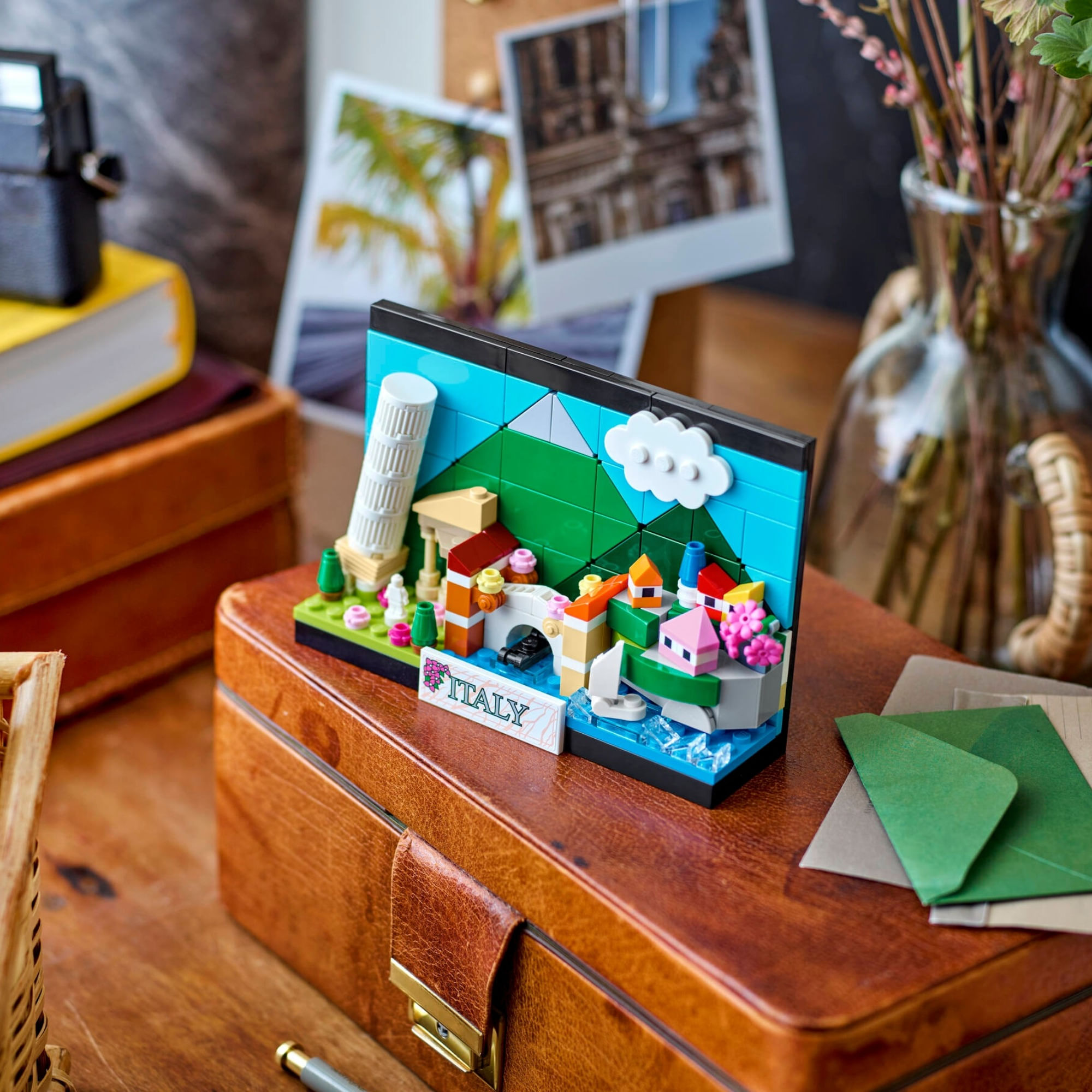 Presente de viagem – Este cartão postal LEGO® é a ideia de presente perfeita ou um mimo inesperado para quem ama a Itália ou sonha em viajar para lá um dia