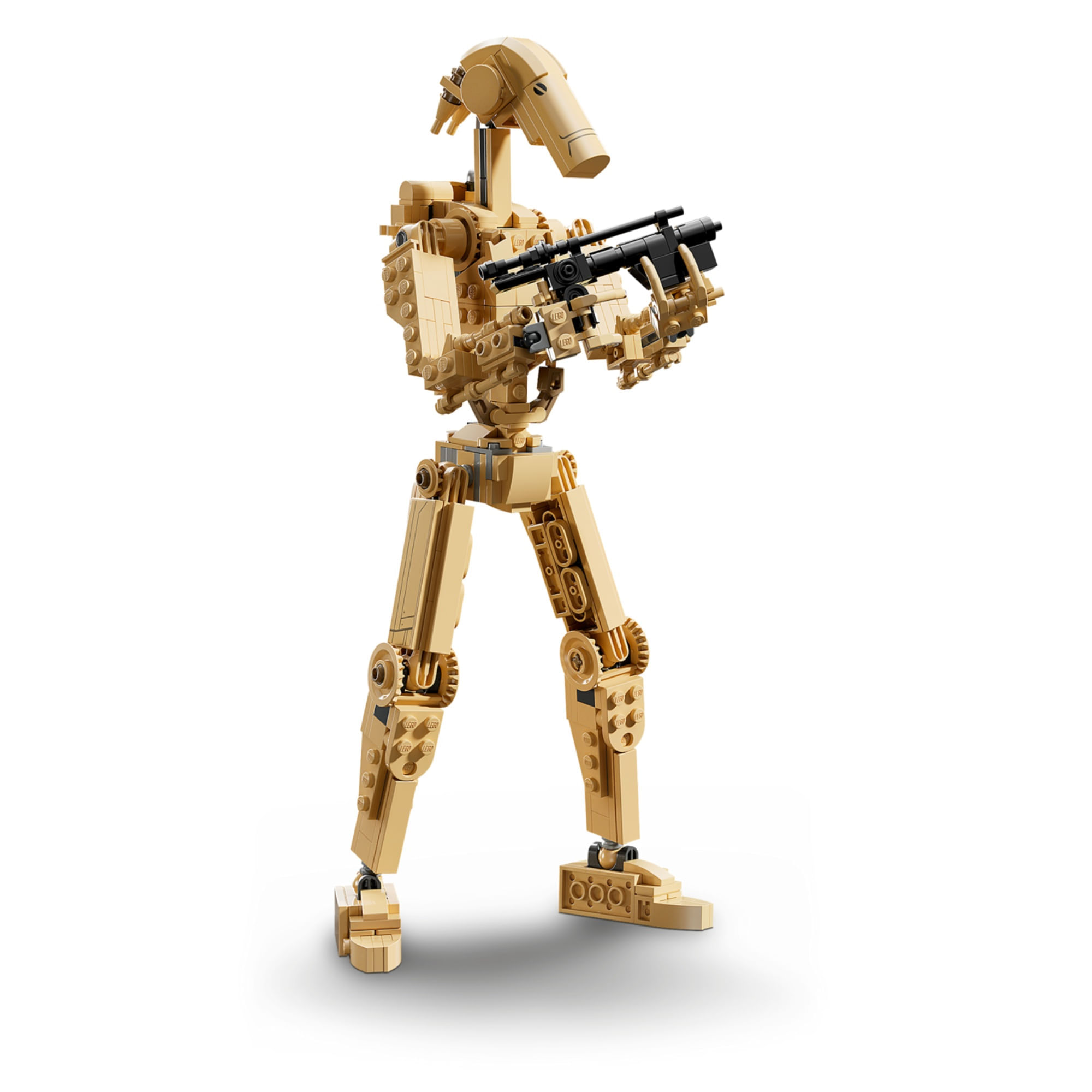 Figura montável e articulada – O Droide de Batalha pode ser posicionado de várias maneiras e tem um blaster construído com peças que pode ser preso às costas ou segurado nas mãos