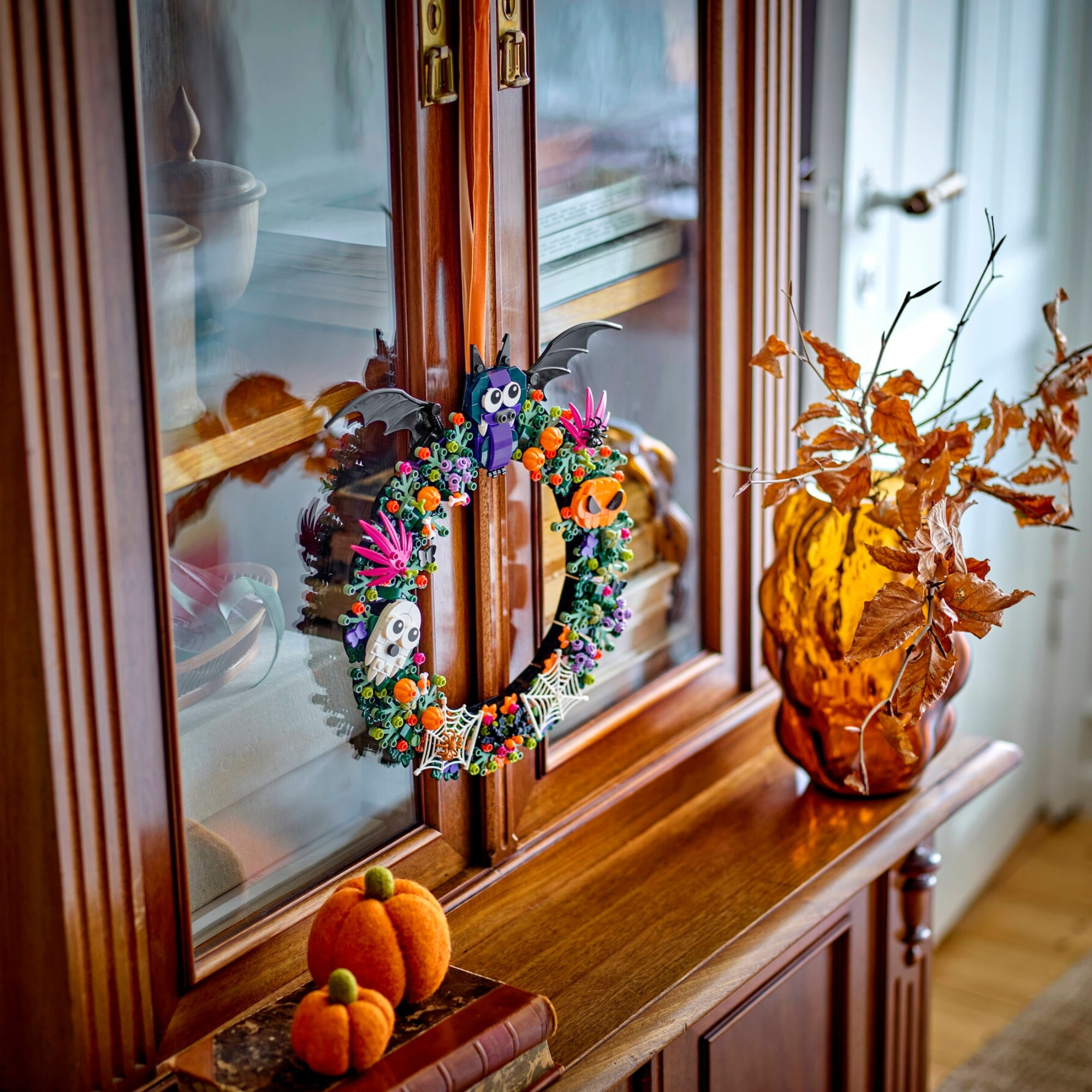 Guirlanda de exibição – Este conjunto LEGO® vem com um cordão para pendurar a guirlanda de brinquedo de Halloween na porta da frente ou na parede durante a temporada assustadora
