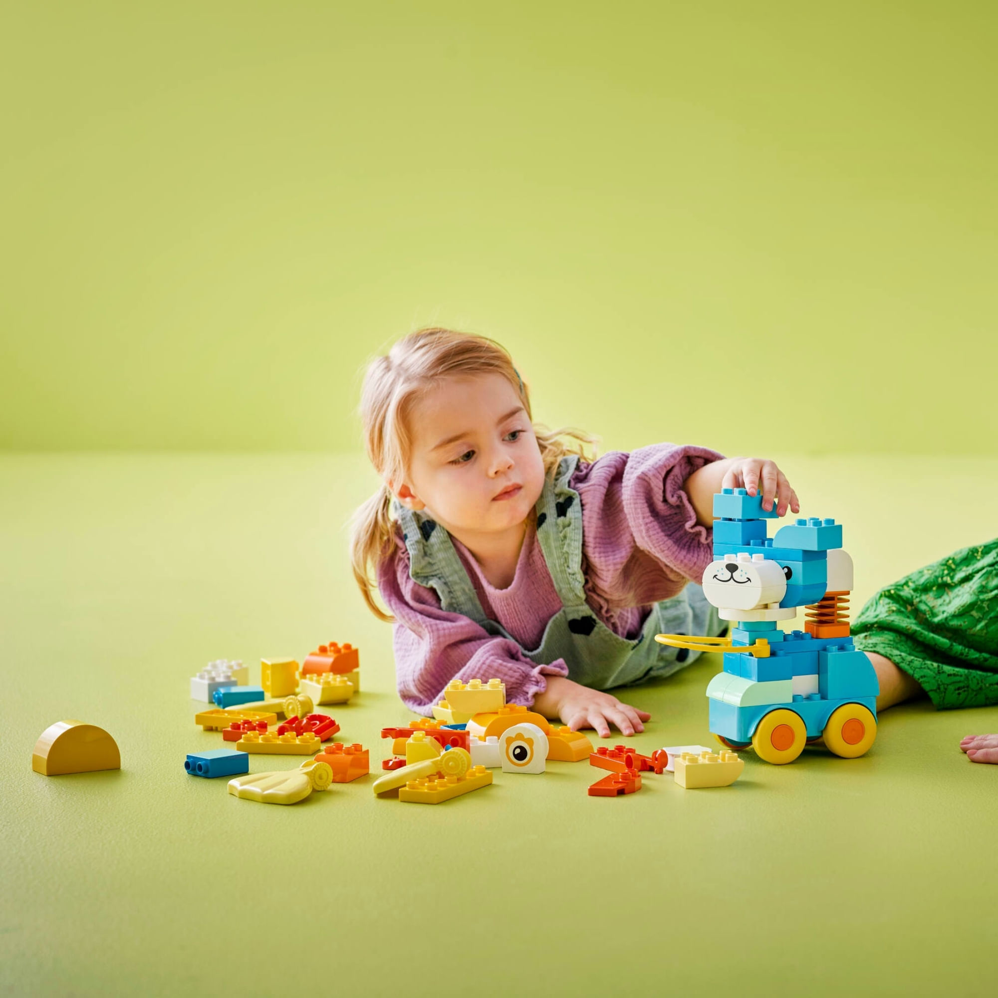 Brinquedo de construção para horas de brincadeira imaginativa – Traga cor e criatividade sem limites para as brincadeiras das crianças com o brinquedo de construção LEGO® DUPLO® Town 3 em 1 Animais sobre Rodas
