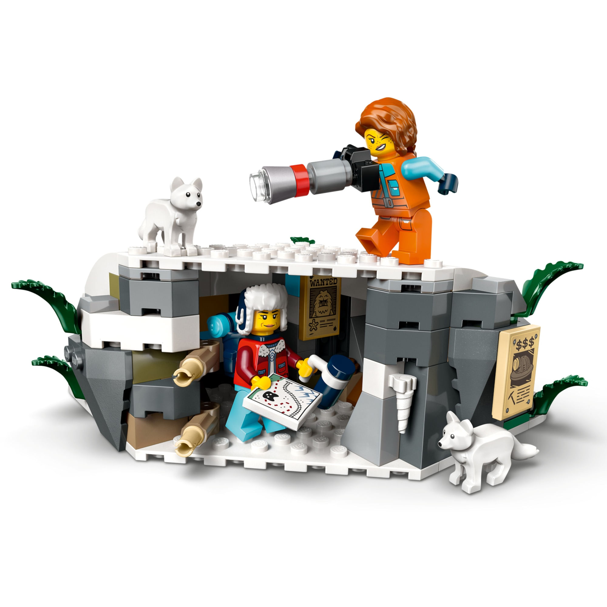 Características e funções – As crianças podem dirigir o trem de brinquedo pelo túnel da montanha para ativar uma função de queda de rochas e enviar minifiguras por uma tirolesa que conecta a montanha ao posto avançado do Ártico