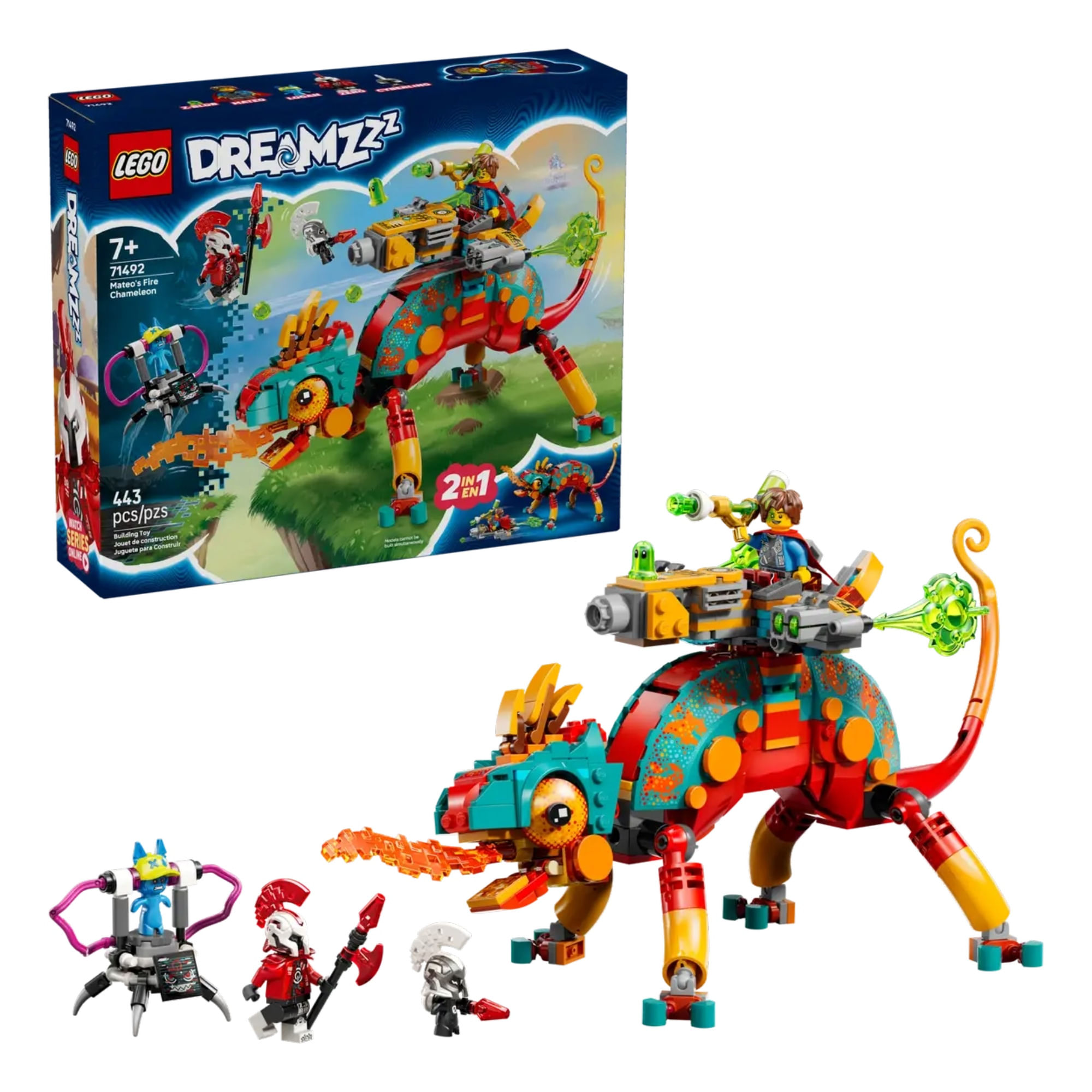 Estimule a criatividade com o conjunto de construção LEGO® DREAMZzz™ Camaleão de Fogo de Mateo (71492) para crianças a partir de 7 anos, que permite que meninos e meninas se unam ao herói Mateo para resgatar Logan do vilão Zero.