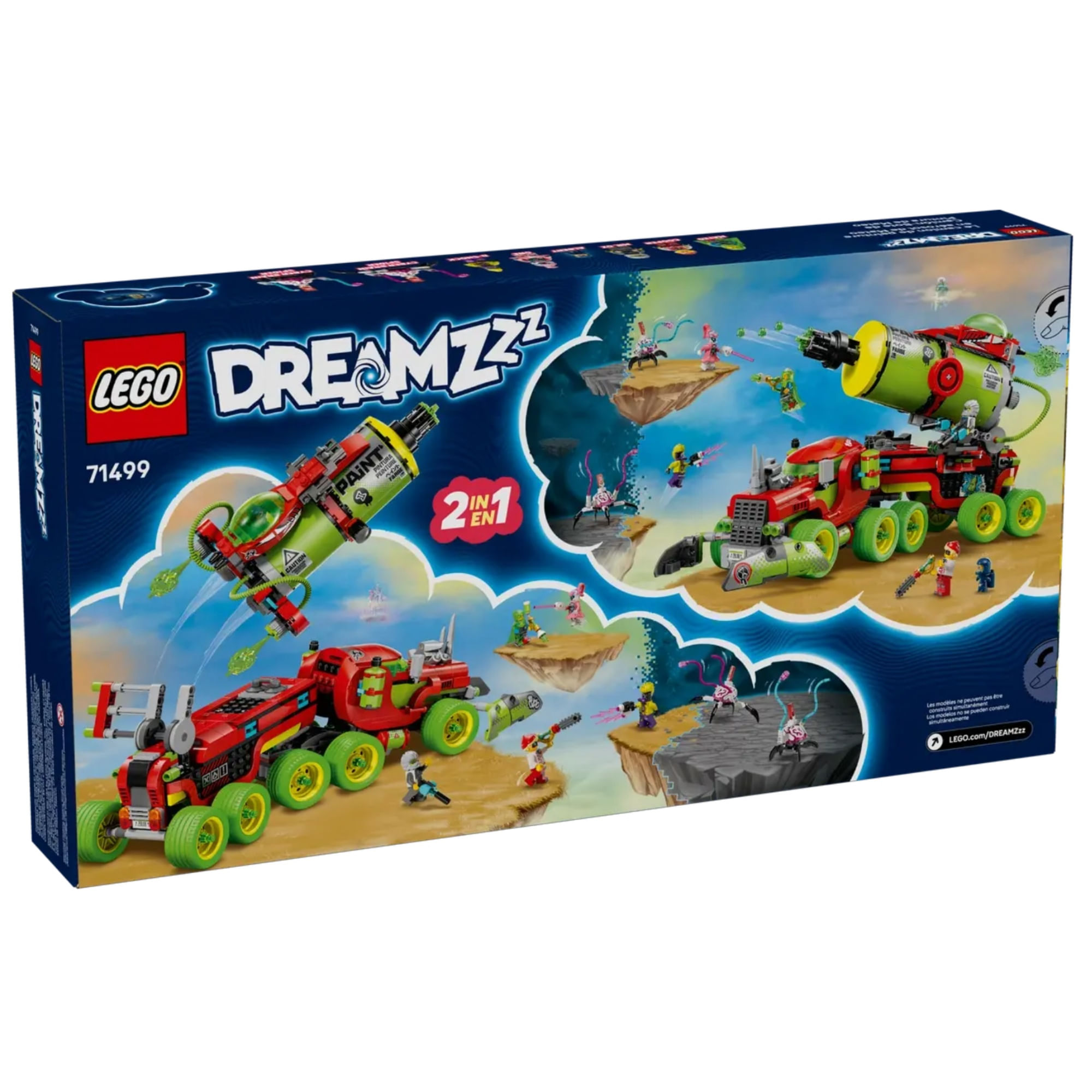 Modelo de veículo reconstruível – Os fãs de LEGO® DREAMZzz™ vão se divertir muito criando um caminhão de brinquedo antes de escolher construí-lo com uma lata de spray gigante ou um lançador de foguetes de lata de spray