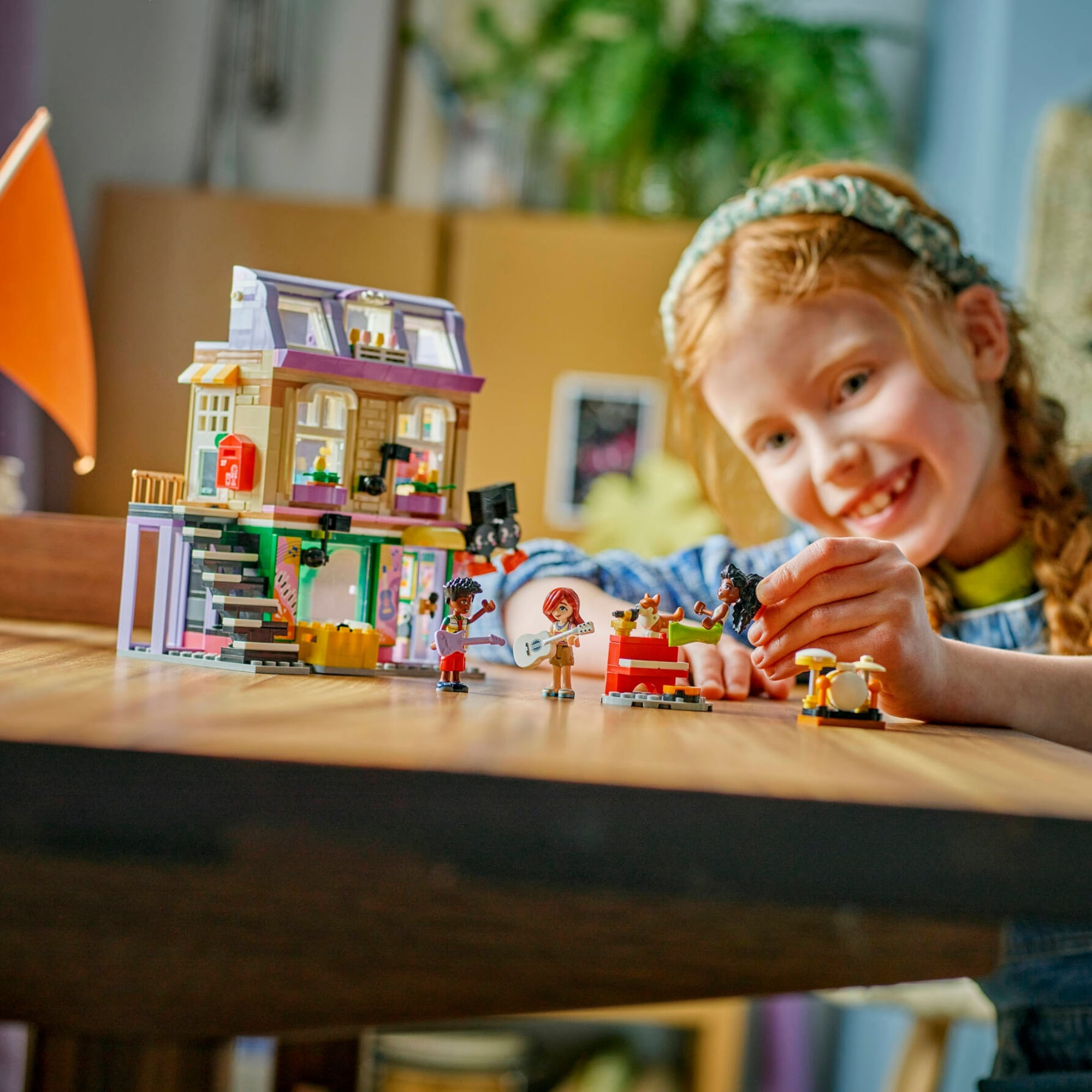 Um presente de conjunto de construção para amantes da música – Este conjunto LEGO® Friends Loja de Música e Apartamento inclui muitos acessórios inspirados na música, incluindo uma bateria de brinquedo, piano, violão, saxofone e muito mais