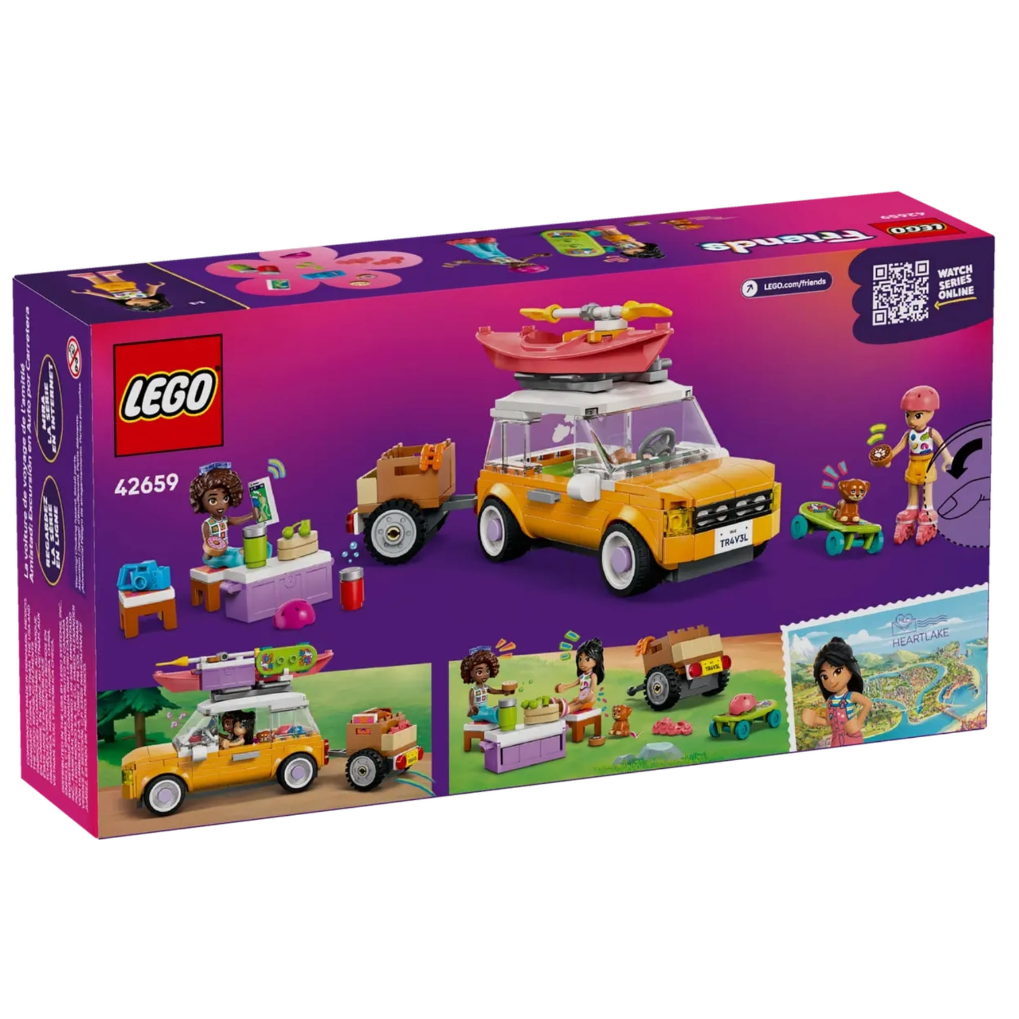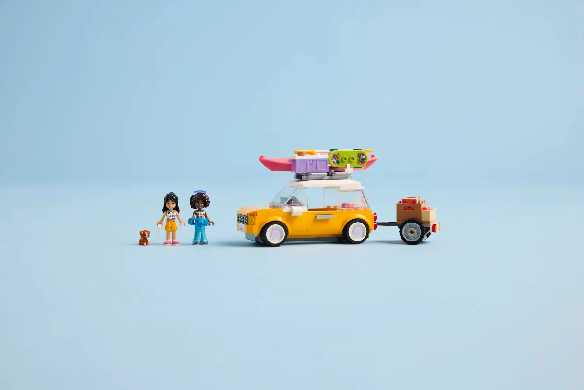 Leve as crianças em uma jornada de criatividade enquanto ajudam Liann e Aliya a encher o carro e o trailer removível com tudo o que precisam para a viagem. Os amigos sentam na frente, e há um assento para a cadela Aira no banco de trás. Os acessórios incluem um caiaque, 2 capacetes, um skate, patins inline, 2 cadeiras e uma caixa térmica com um sanduíche, um donut, um biscoito, cerejas e um petisco para o animal. Na hora do lanche, a caixa térmica também serve como mesa de piquenique.