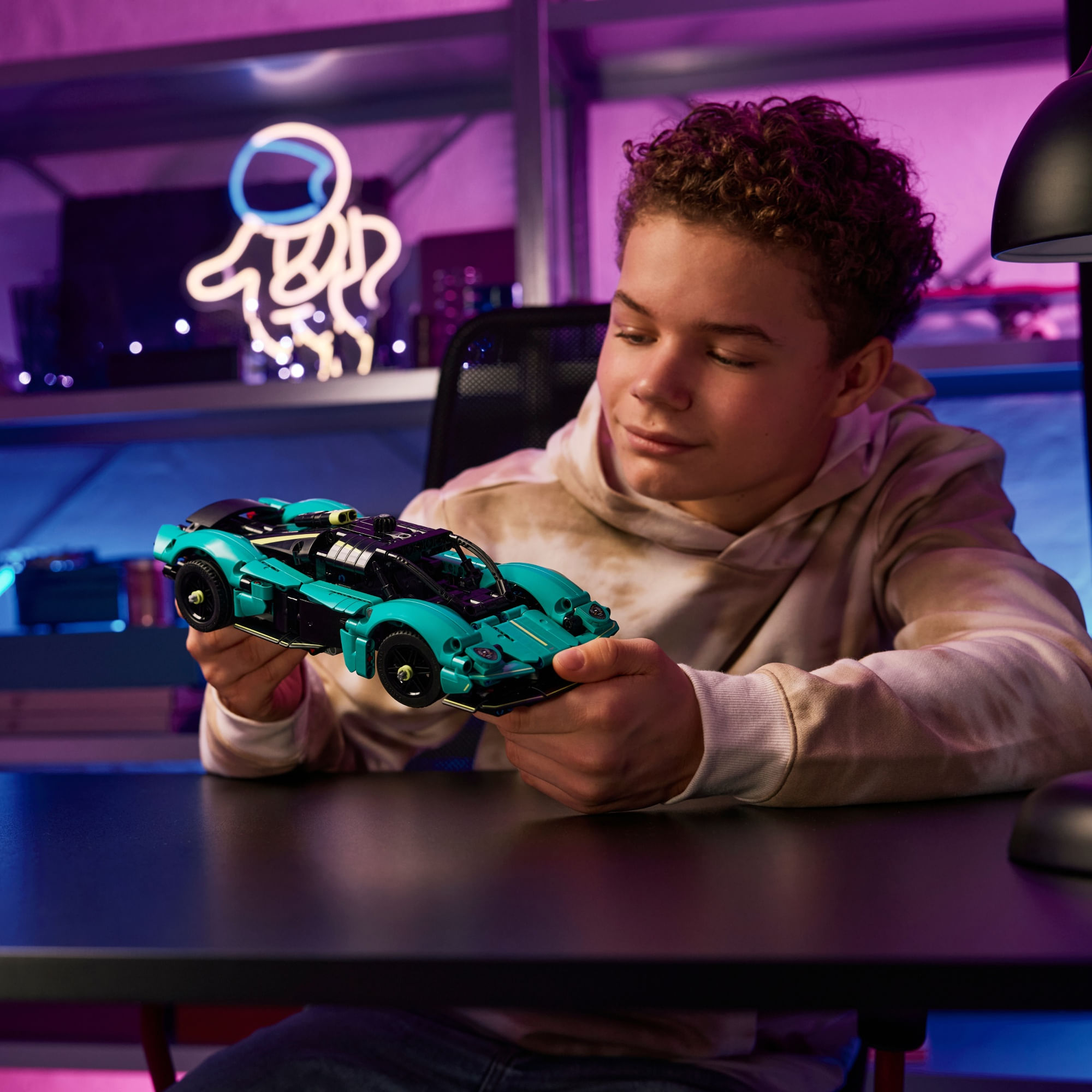 Um kit de modelo de carro para crianças de 9 anos ou mais – Deixe as crianças e os fãs de carros esportivos construírem o carro dos seus sonhos com este modelo LEGO® Technic™ Aston Martin Valkyrie, que inclui muitas funções autênticas