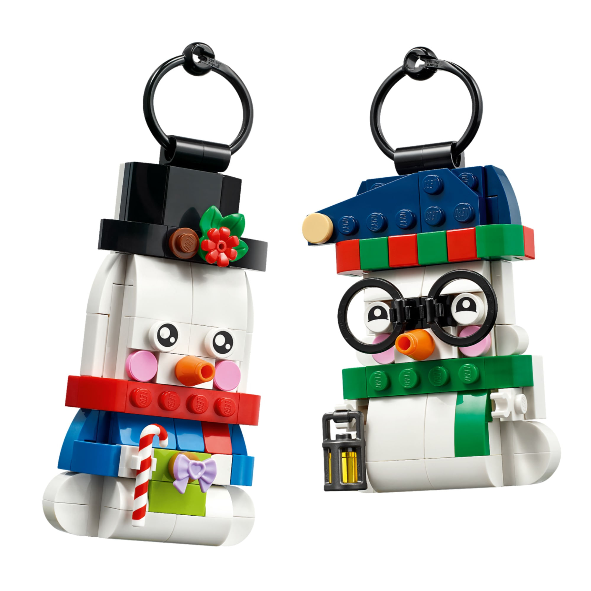 Meninas e meninos vão se divertir muito construindo os bonecos de neve e admirando todos os detalhes fofos, incluindo seus charmosos narizes de cenoura. Há um boneco de neve adulto que usa cartola e segura um presente, e um boneco de neve infantil que usa óculos, gorro e segura uma lanterna. Os bonecos de neve também vêm com argolas para pendurar, então, quando prontos, eles se transformam em enfeites de Natal LEGO que as crianças podem pendurar na árvore ou usar como parte de uma decoração festiva.