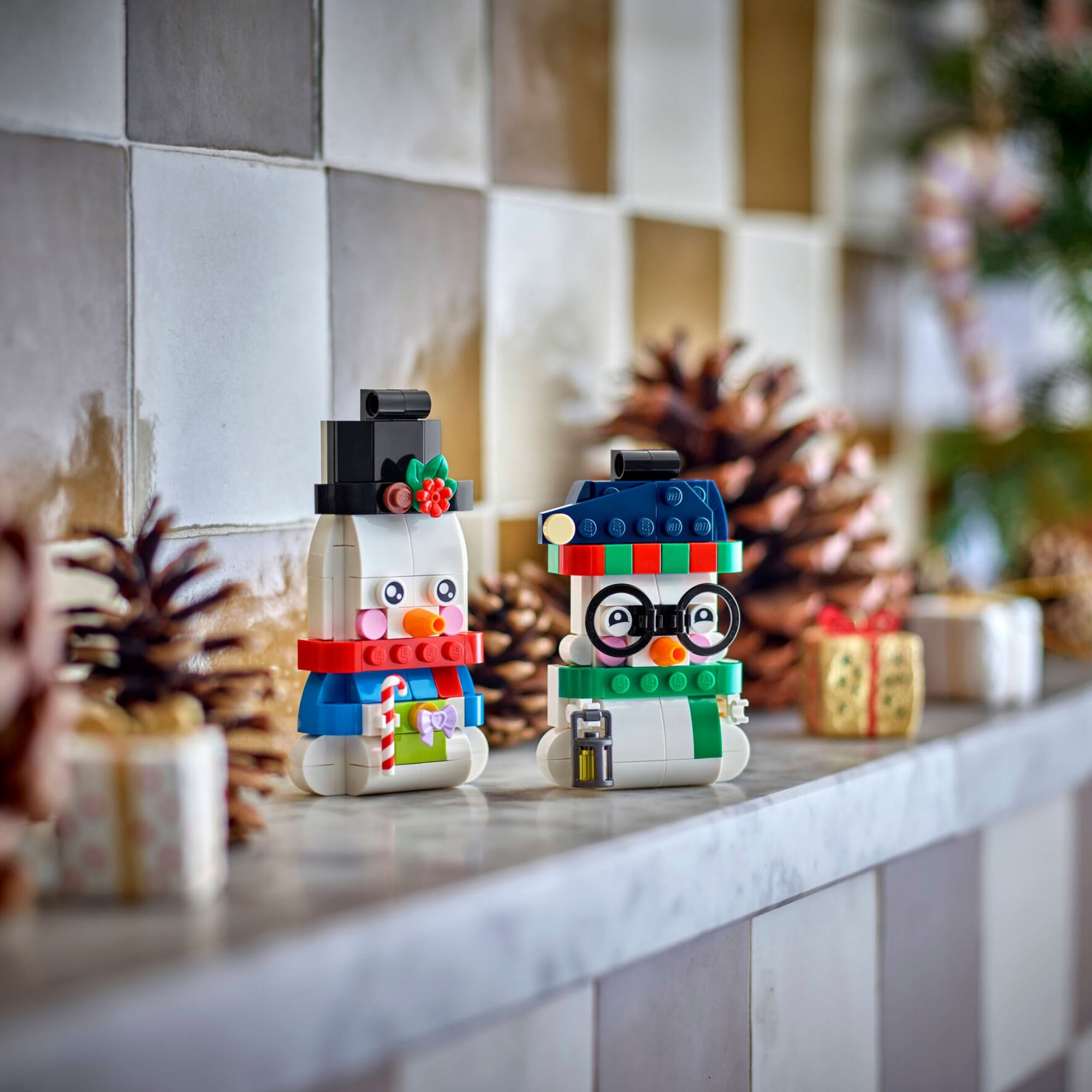 2 bonecos de neve LEGO® – O kit de construção contém 2 bonecos de neve, um adulto e uma criança, ambos com nariz de cenoura