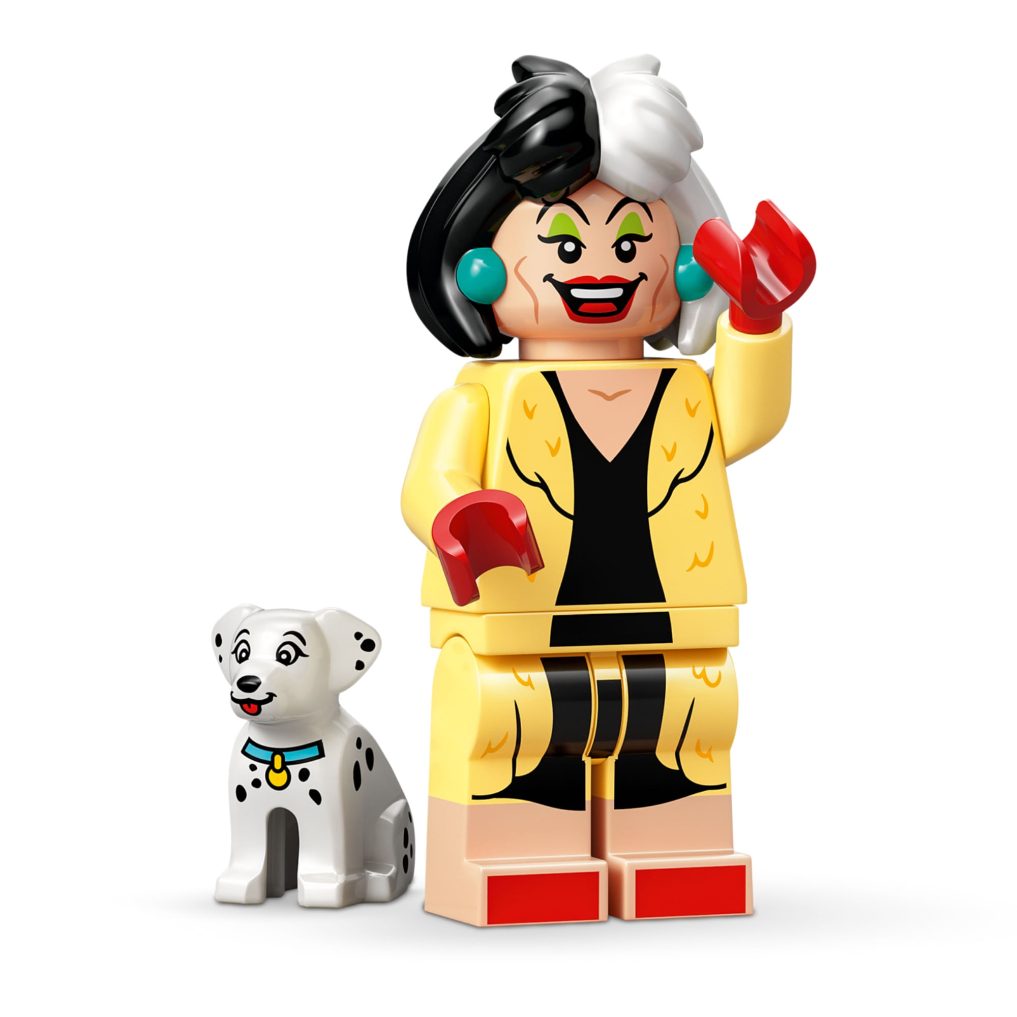 Conteúdo da caixa – Este conjunto de construção de brinquedos LEGO® | Disney apresenta um modelo de construção de carro clássico com uma personagem vilã Cruella De Vil LEGO | Disney e um personagem canino para brincar ou exibir