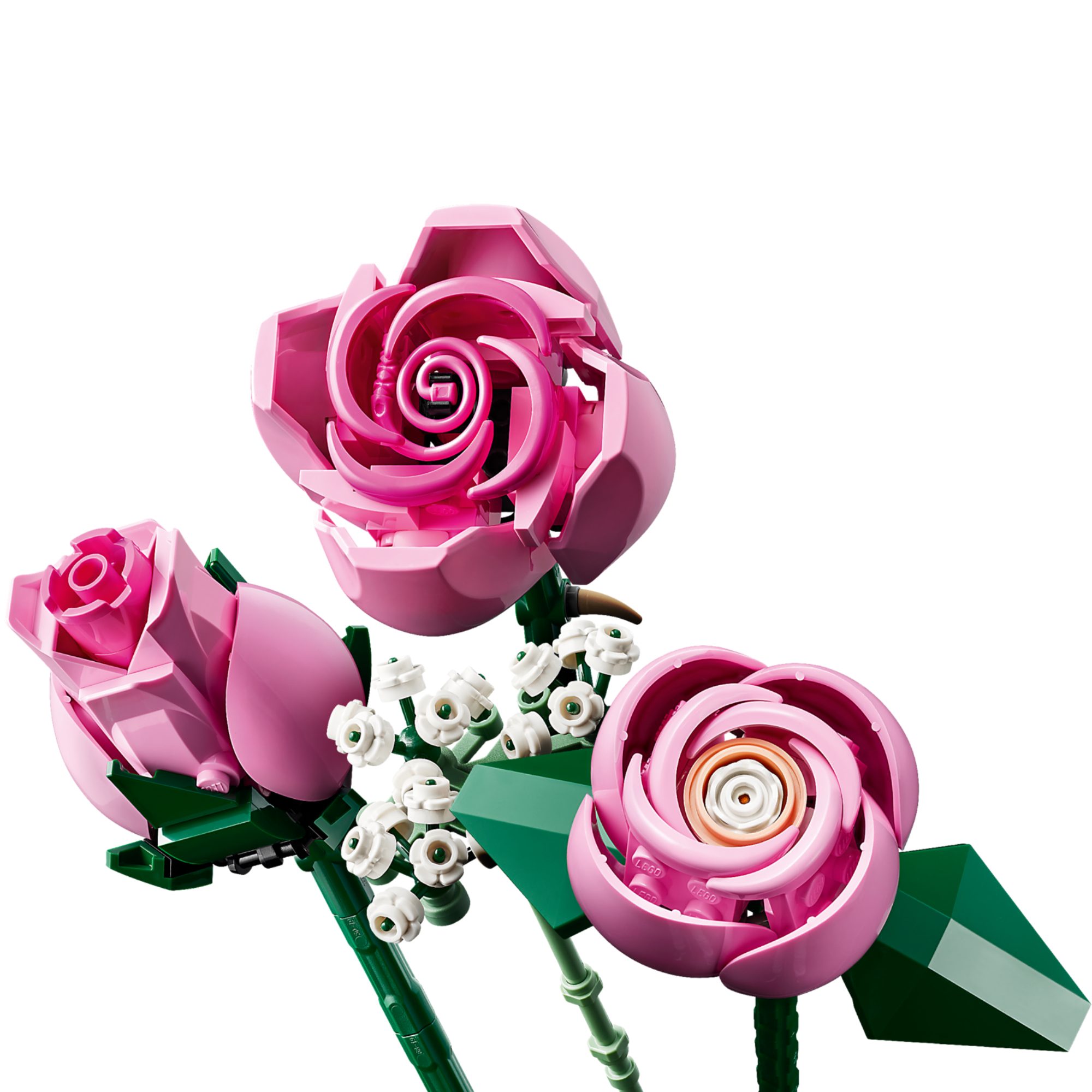 Flores LEGO® – O conjunto contém 4 rosas em plena floração, 4 rosas em flor e 4 botões de rosa, além de 4 raminhos de mosquitinho com flores brancas