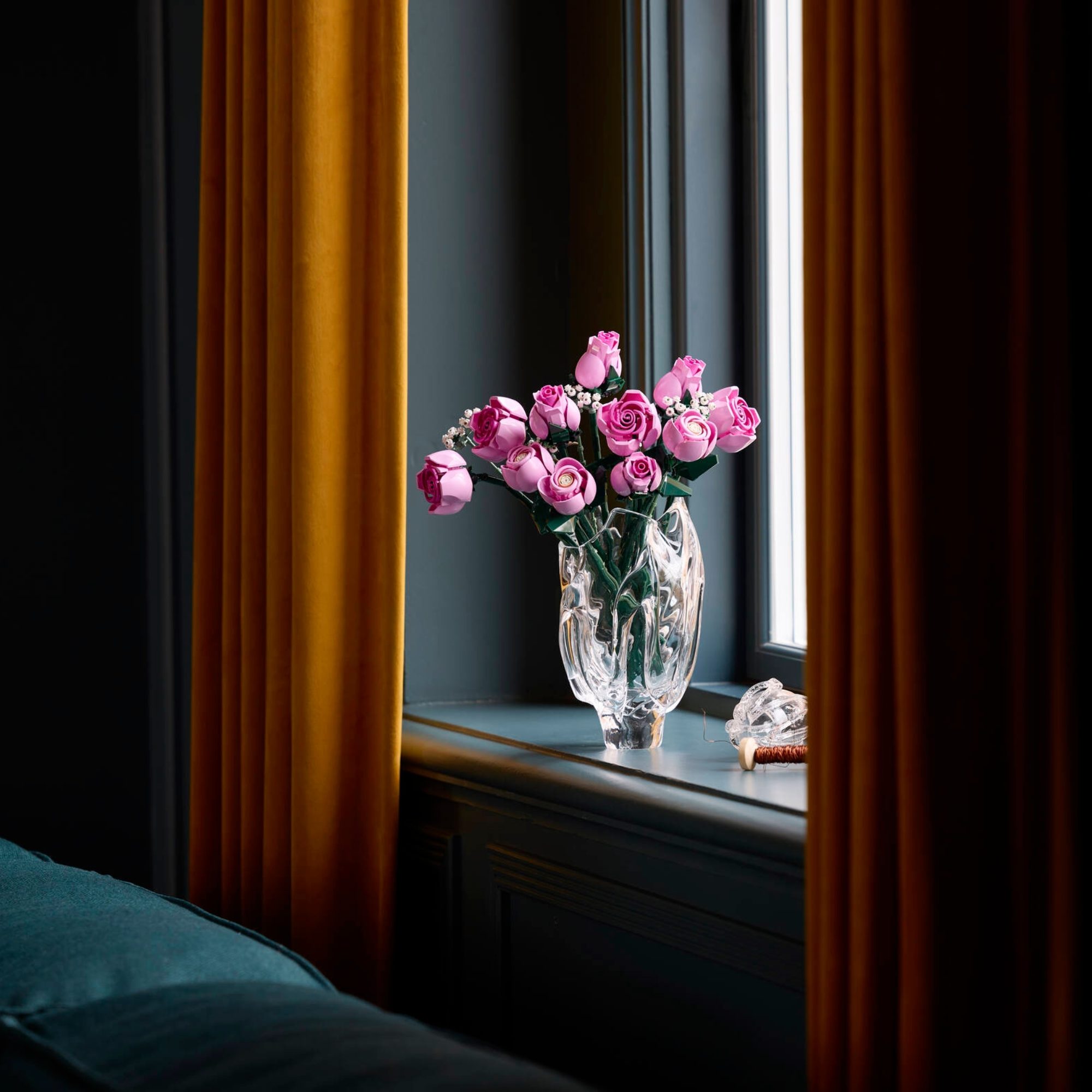 Crie um elegante arranjo de flores feito com peças e maravilhe-se com seus detalhes rosados com este conjunto de construção LEGO® Botanicals Buquê de Rosas Cor-de-Rosa (10374) para adultos.