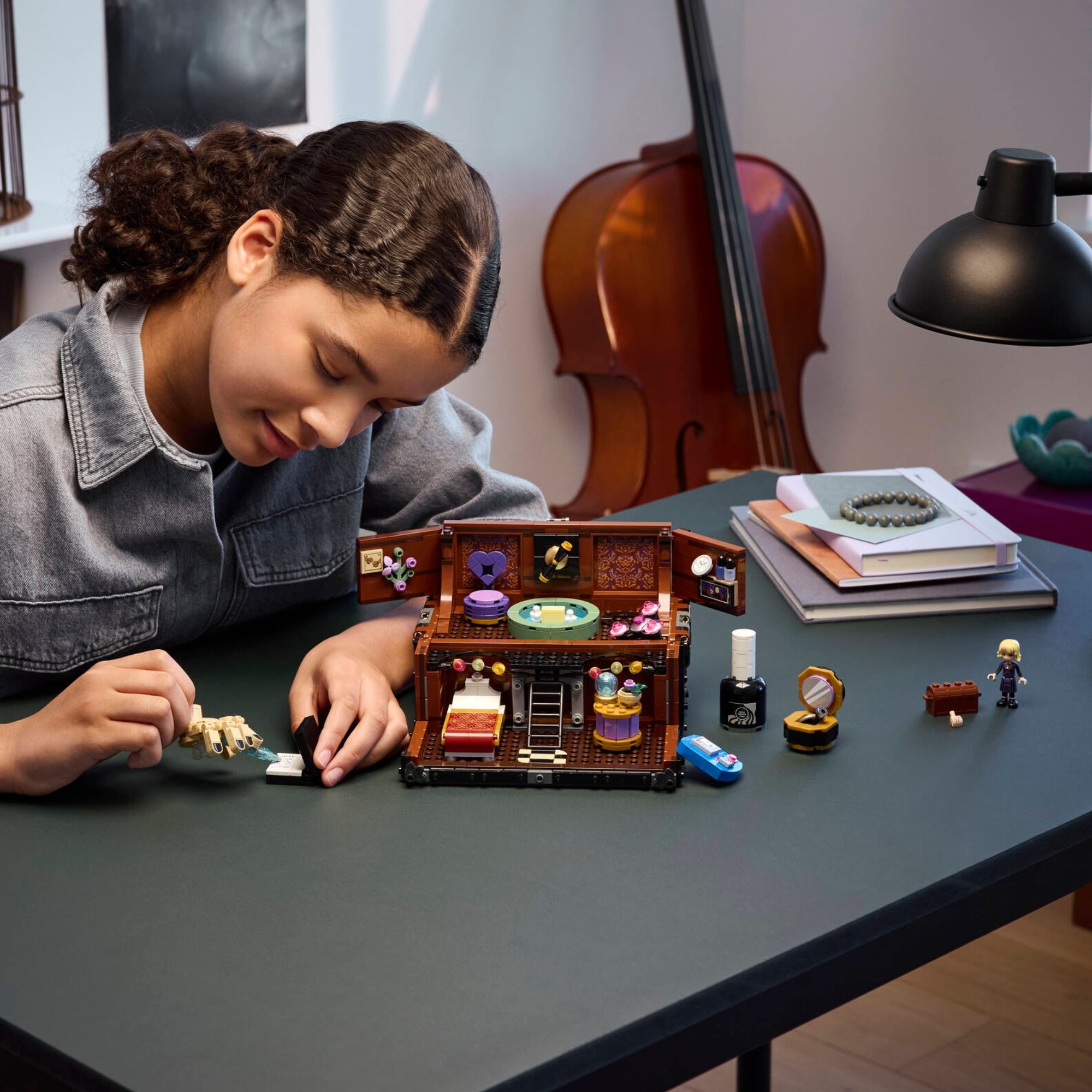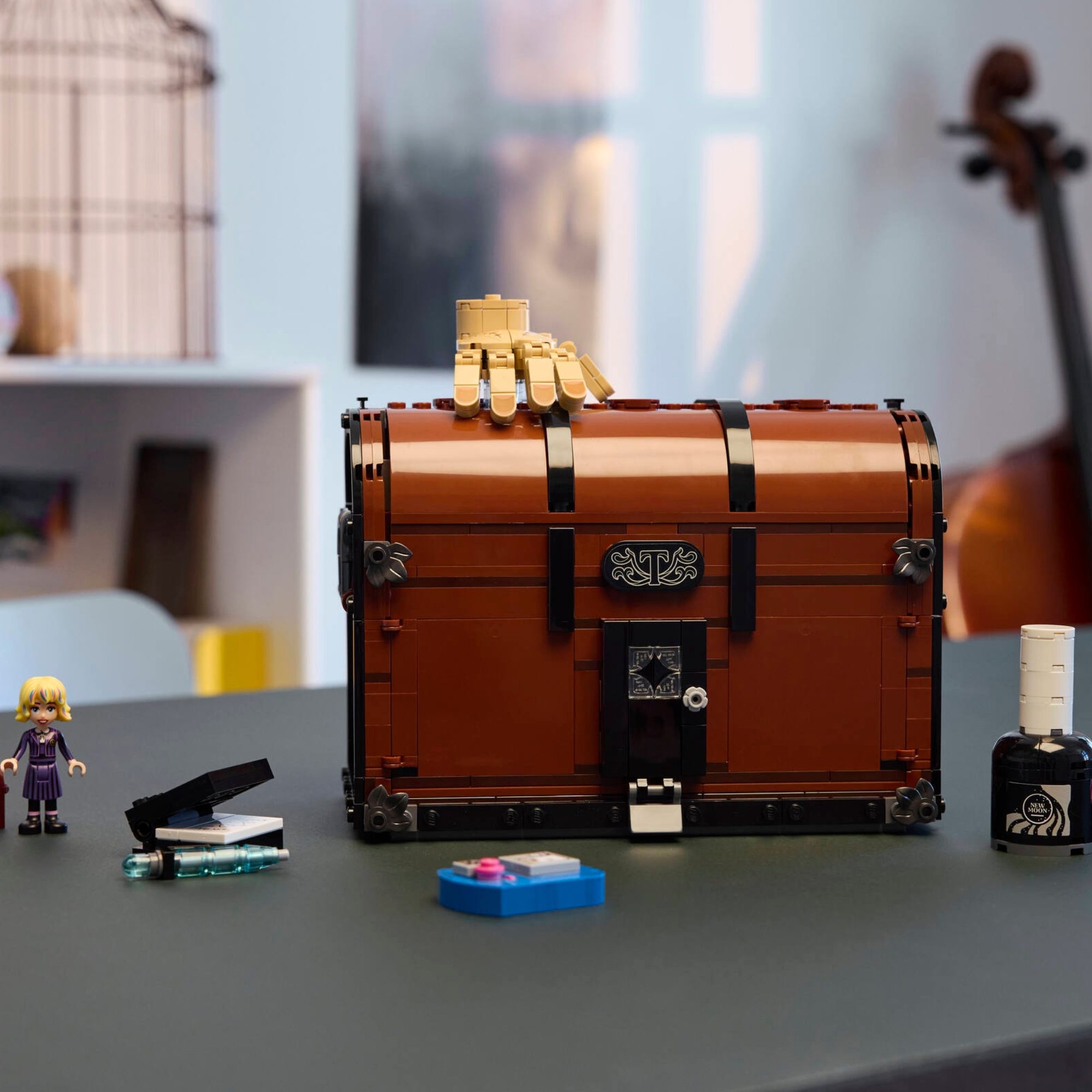 Uma casa portátil infinita aguarda os fãs de Wednesday a partir de 10 anos com este detalhado conjunto de construção de peças LEGO® Wednesday Apartamento do Mãozinha (76785). Um divertido presente de aniversário para crianças, este modelo criativo para brincar ou expor apresenta um baú que abre e inclui uma cama, cadeira, chapéu e relógio, espaço na parte superior do baú para guardar adesivos, esmalte e creme para as mãos, e muito mais. Além disso, inclui uma figura articulada de Mãozinha e uma miniboneca de Enid. Este conjunto de construção com peças é um presente inteligente e criativo de Halloween ou de fim de ano para meninas, meninos e fãs de Wednesday. Ele foi projetado para satisfazer a paixão por mistérios e aventuras, ou pode ser usado como um conjunto exclusivo de decoração de quarto em uma mesa ou prateleira. Descubra mais conjuntos LEGO Wednesday Addams (vendidos separadamente) da série e expanda as emocionantes possibilidades de brincar e expor. Além disso, as crianças podem desfrutar de uma aventura de construção fácil e intuitiva com o aplicativo LEGO Builder, onde podem ampliar e girar modelos em 3D, salvar conjuntos e acompanhar seu progresso. Este conjunto contém 828 peças. Baú de brinquedos de construção com Mãozinha e Enid – O apartamento de Mãozinha é um ótimo presente de Halloween para fãs da série de TV Wednesday com 10 anos ou mais e vem com 2 personagens e um baú que abre para brincar ou exibir Conjunto de brinquedos LEGO® de quarta-feira – O conjunto inclui um baú de brinquedo "casa" com áreas de estar distintas, detalhes divertidos e muitos acessórios (esperados e inesperados!) e é uma peça única de decoração de ambiente Recrie cenas icônicas de quarta-feira – Este conjunto de brinquedos apresenta Mãozinha, uma miniboneca Enid Sinclair e acessórios para que as crianças possam recriar cenas da série ou criar novas histórias misteriosas. funções de jogo imaginativas – As crianças colocam adesivos de unha e frascos de esmalte na parte superior do porta-malas, giram a alça para fazer o 'chuveiro' funcionar ou levantam o porta-malas pela parte inferior para abri-lo e brincar Presente de quarta-feira Addams para crianças – Este conjunto LEGO® é um ótimo presente de aniversário ou presente de Natal para meninas, meninos e fãs da série de TV com 10 anos ou mais que adoram produtos peculiares da quarta-feira Instruções intuitivas – O aplicativo LEGO® Builder guia crianças e fãs em uma aventura de construção intuitiva, onde eles podem salvar conjuntos, acompanhar o progresso e aumentar o zoom e girar modelos em 3D enquanto constroem Inspire a imaginação – os brinquedos de construção LEGO® Wednesday incentivam os jovens fãs de mistérios em sua busca pela verdade, com opções de construção e detalhes criativos para expandir as habilidades de contar histórias e a criatividade. Dimensões – Quando fechado, este baú de 828 peças e peça de decoração para quarto mede mais de 13 cm de altura, 23 cm de largura e 11 cm de profundidade.