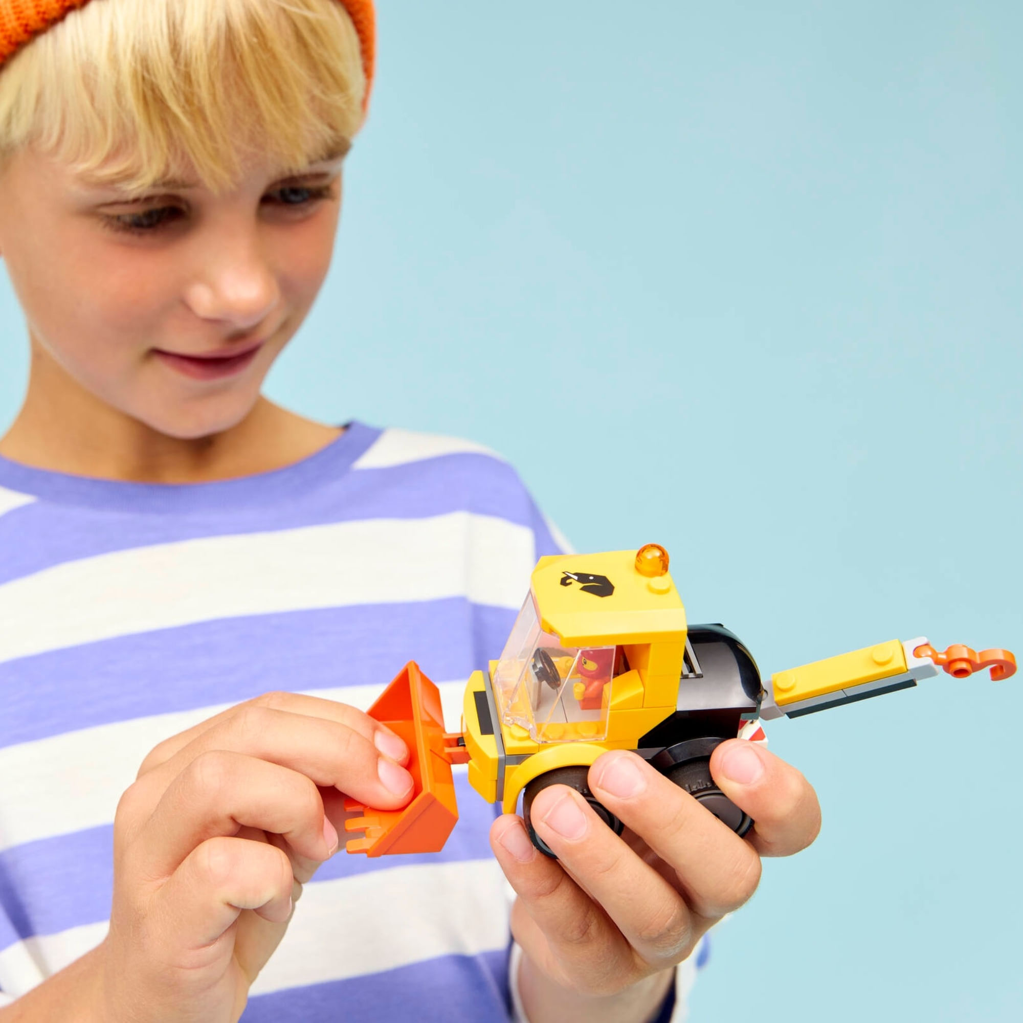 MINIFIGURA DE OPERÁRIO DA CONSTRUÇÃO CIVIL JÚNIOR – As crianças podem colocar a minifigura júnior na cabine e embarcar em grandes aventuras.