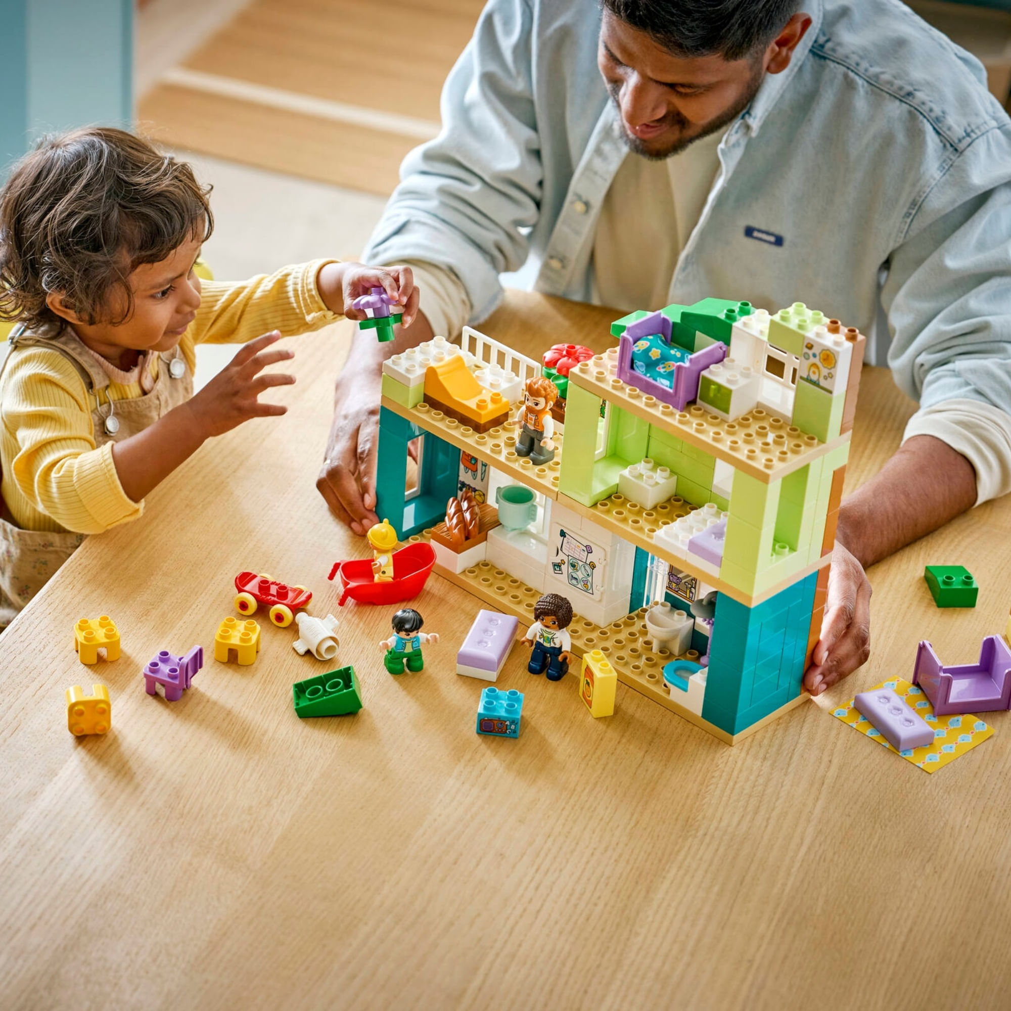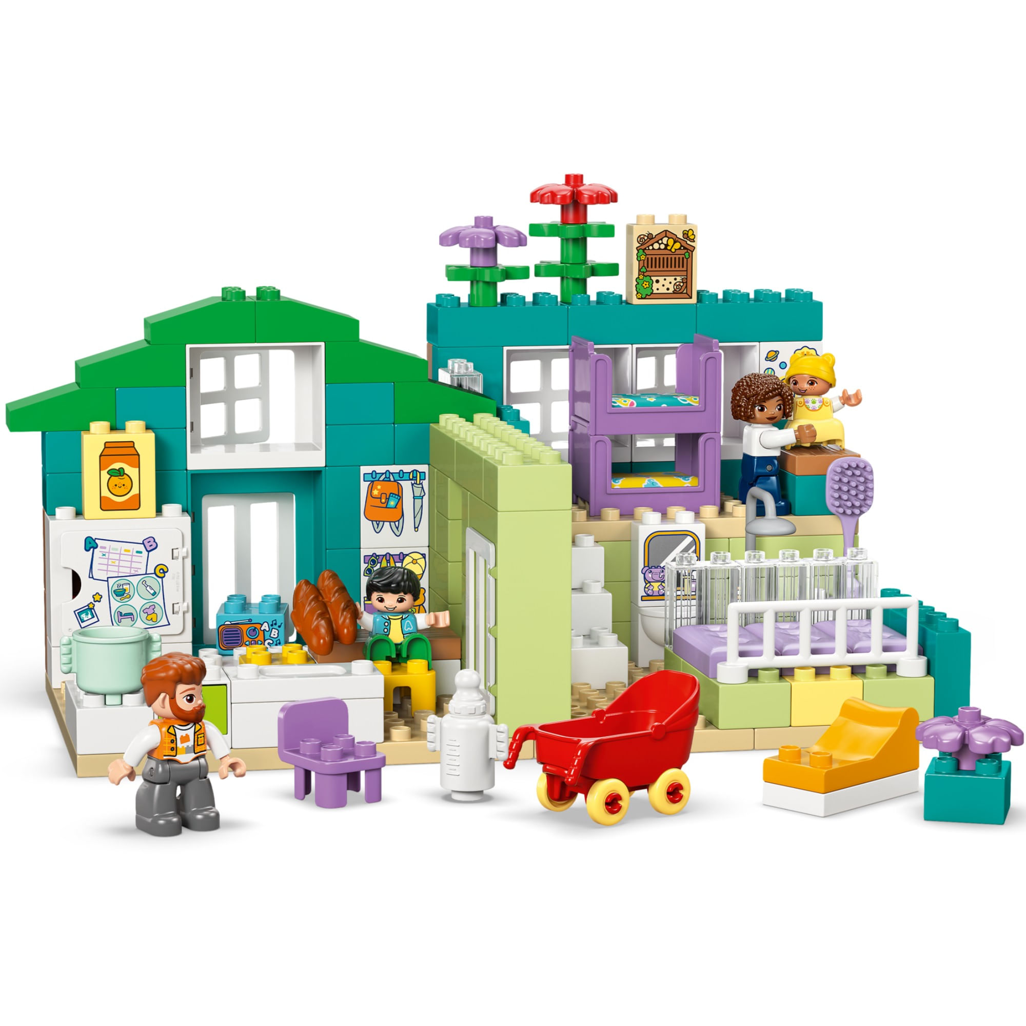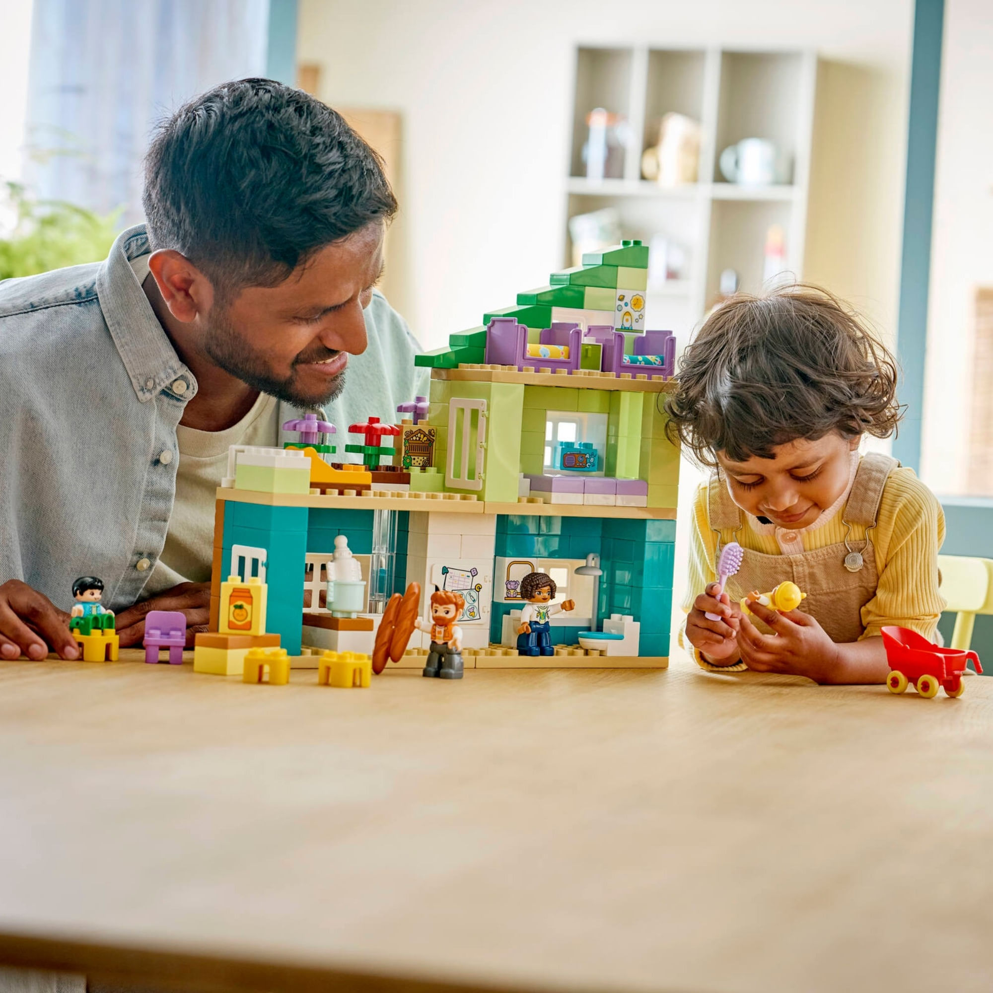RECRIA MOMENTOS EM FAMÍLIA – As crianças exploram as emoções e os relacionamentos familiares através da narrativa neste conjunto LEGO® DUPLO® Town com as figuras da mãe, do pai, da criança pequena e do bebê.