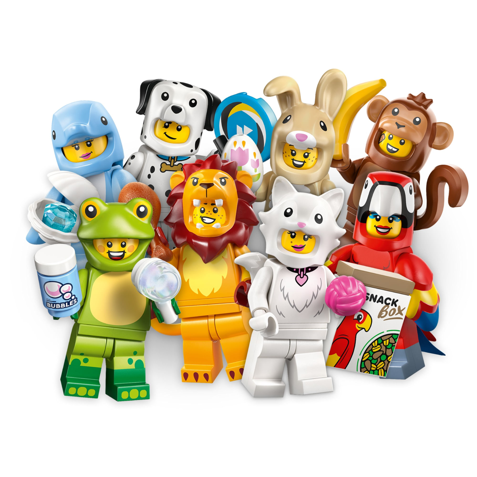 Meninos e meninas a partir de 5 anos podem criar histórias divertidas com uma das 12 figuras colecionáveis ??da Série 28 de Minifiguras LEGO® Animais (71051), caixas surpresa com brinquedos de animais pequenos. Cada caixa contém uma minifigura LEGO surpresa, totalizando 12 personagens para colecionar, incluindo figuras de brinquedo vestidas com fantasias de papagaio, leão, sapo, crocodilo, dálmata, peixinho dourado, coelhinho fofo, pavão, gato peludo, coala, golfinho e macaco. Cada uma das 12 minifiguras vem em uma caixa surpresa lacrada e todas acompanham pelo menos um acessório. Esses brinquedos de animais fofos e detalhados podem ser adicionados a uma coleção existente, exibidos com orgulho ou usados ??para criar histórias divertidas. Este pequeno presente para crianças que gostam de animais e da natureza é uma delícia que inspira ótimas histórias e incontáveis ??horas de brincadeira, sozinhas ou com os amigos. MINIFIGURA COLECIONÁVEL – Fãs de LEGO® a partir de 5 anos podem colecionar, brincar e exibir estas minifiguras LEGO da Série 28 de Animais, com 1 minifigura de brinquedo de animal em cada caixa surpresa. 1 DE 12 BRINQUEDOS DE ANIMAIS – As crianças podem se divertir com 1 de 12 brinquedos colecionáveis ??em cada caixa, incluindo minifiguras com fantasias de leão, sapo, crocodilo, macaco, coala, papagaio, cachorro, coelhinho fofo, peixinho dourado, gato peludo, pavão e golfinho. ACESSÓRIOS DIVERTIDOS – Todas as minifiguras LEGO® vêm com pelo menos 1 acessório, incluindo um macaco com uma banana, um dálmata com um frisbee, um peixinho dourado com ração, um crocodilo com um patinho de borracha e muito mais. INSPIRE A BRINCADEIRA CRIATIVA – Estes adoráveis ??brinquedos de animais em edição limitada, incluindo animais de safári e bichinhos de estimação, despertam a imaginação das crianças e permitem que meninas e meninos criem histórias sozinhos ou com amigos. IDEIA DE PRESENTE PARA CRIANÇAS – Estas minifiguras colecionáveis ??LEGO® são um pequeno presente divertido para crianças que merecem um mimo e adoram a natureza. COLECIONE, BRINQUE E EXIBA – Miniaturas de animais para as crianças colecionarem, construírem, usarem em brincadeiras de faz-de-conta e exibirem com orgulho.
